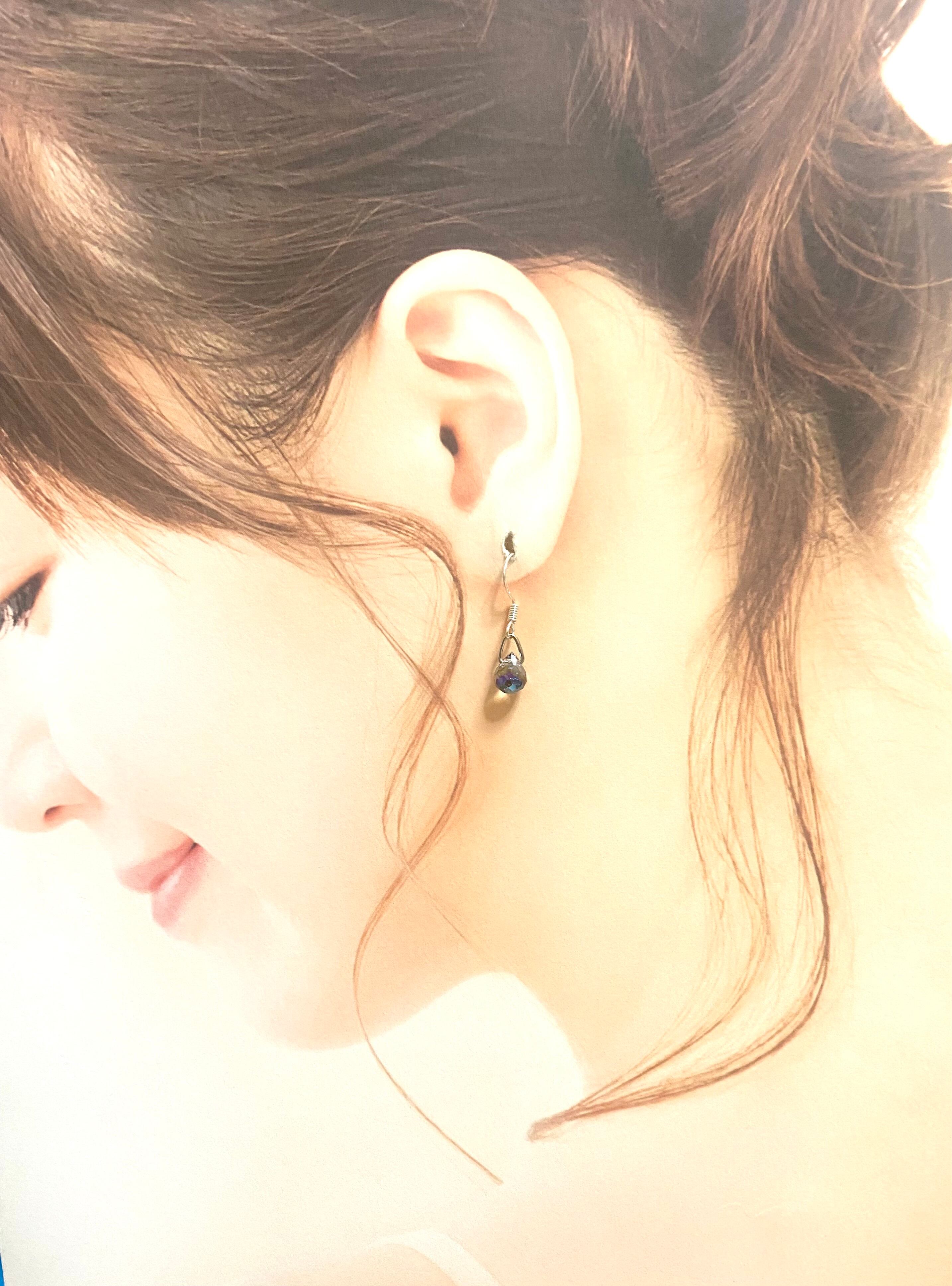 これもうす〜いブルーの入った多角面の小さな一粒ガラスをピアスやイヤリングにしました。