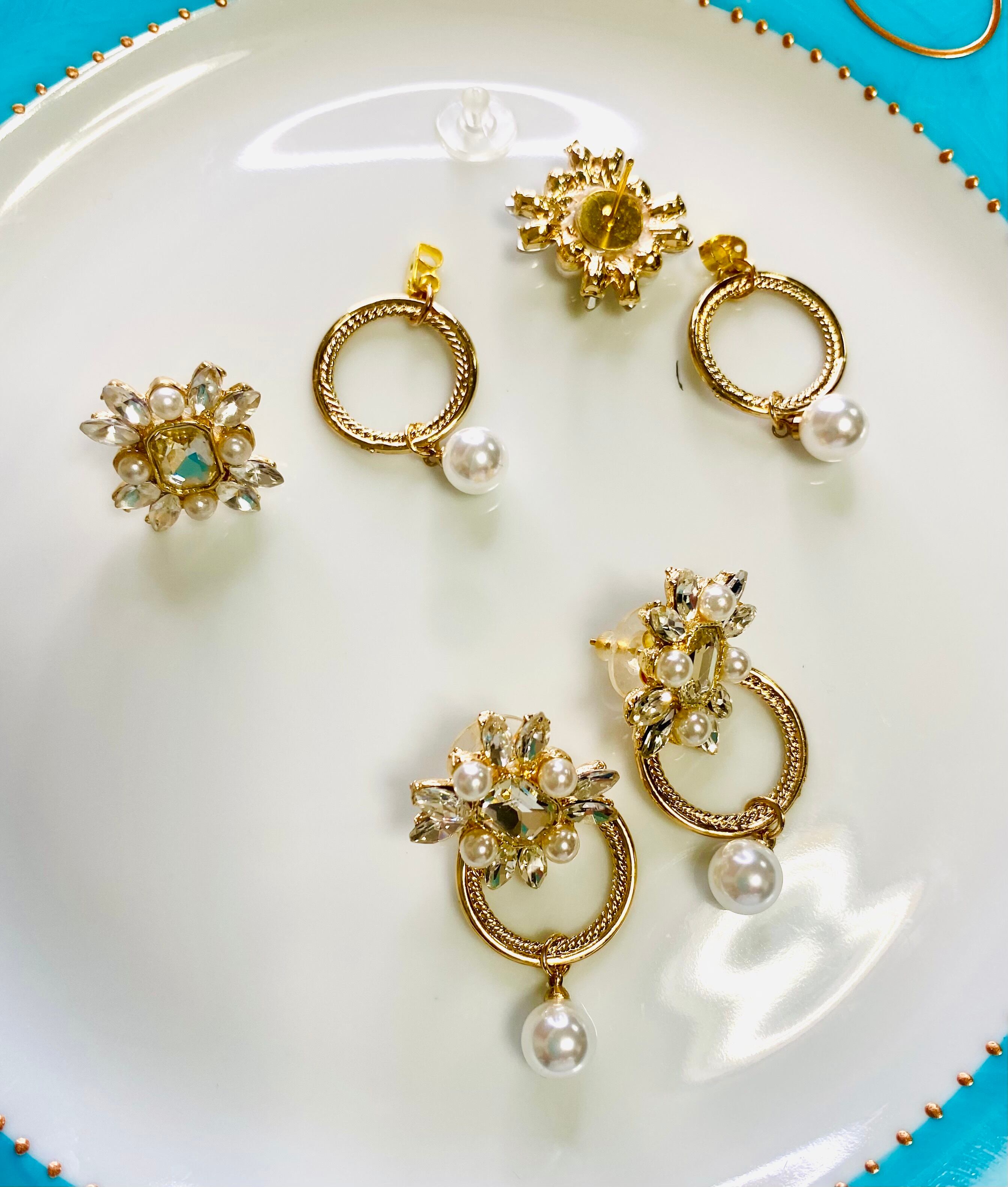 このリングはキャッチにつけているので、キャッチを変えれば華やかなお花のピアスになります。
