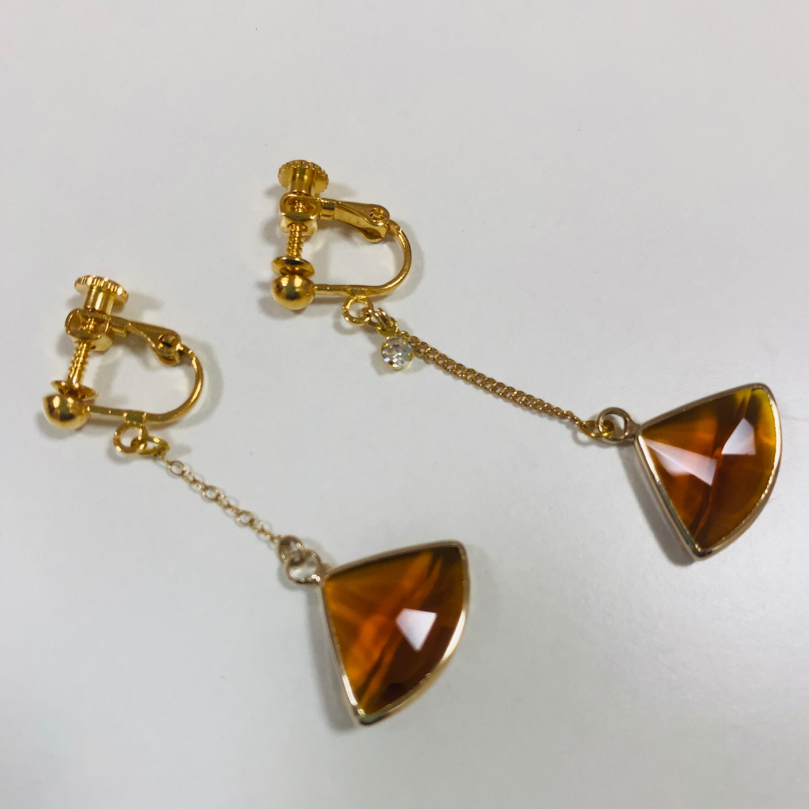 チェーンで繋げたガラスストーンのイヤリングです。
