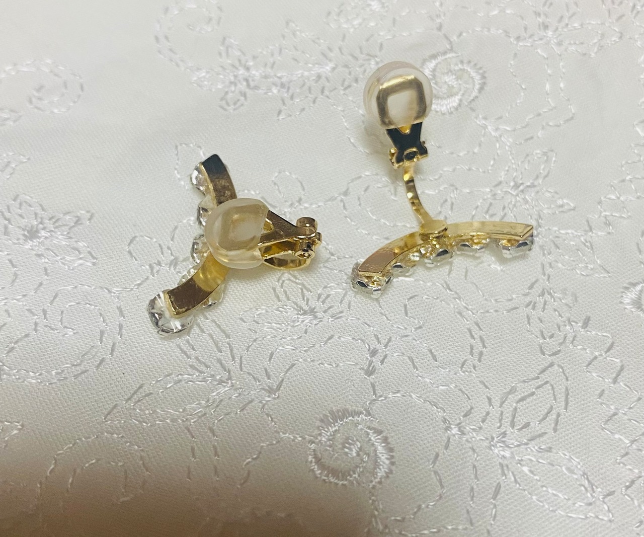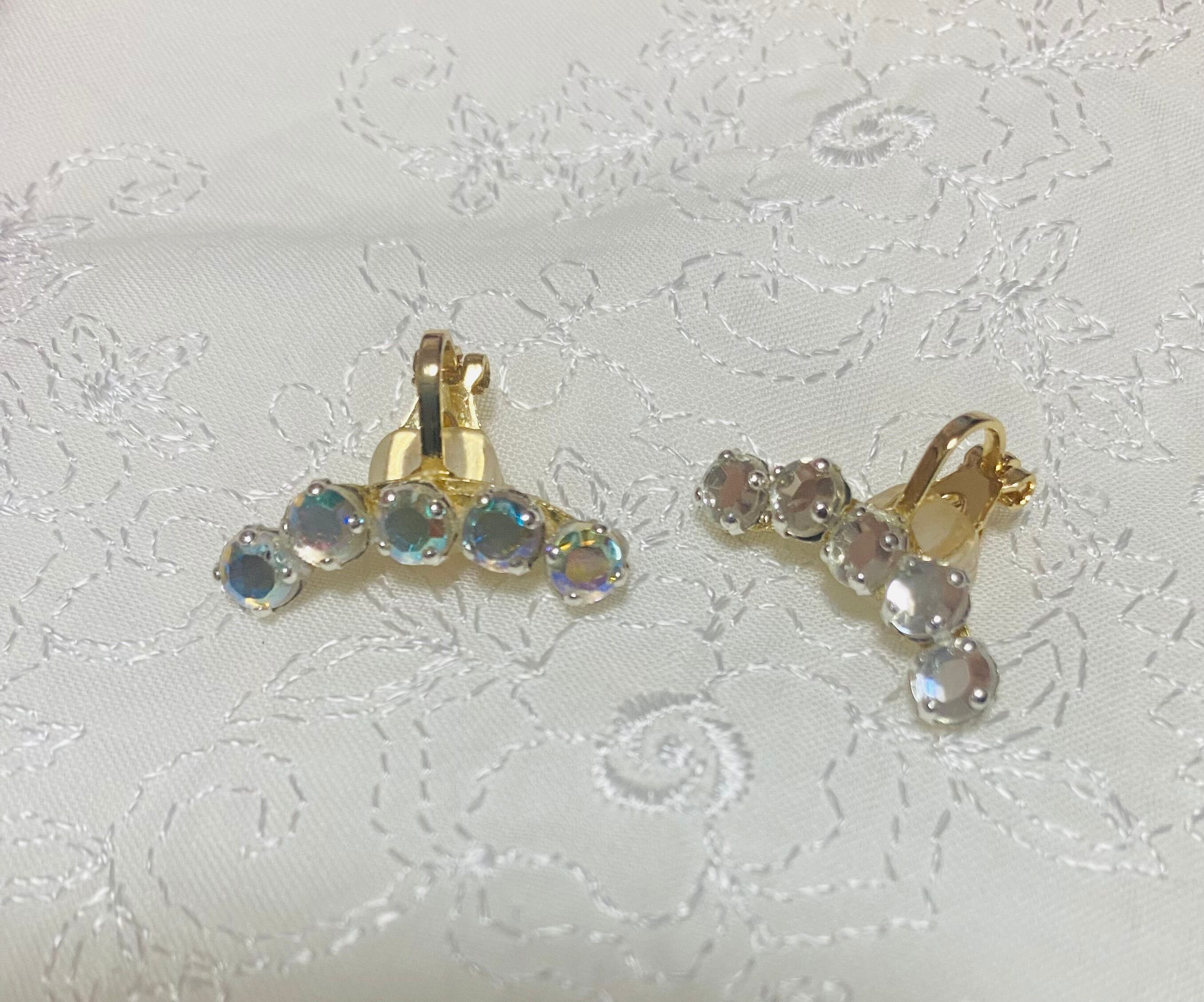 挟むタイプのイヤリングに、ジルコニアのようなガラスを5つ繋げました。