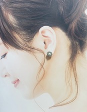 真ん中にパールやブラックビーズをはめて、ジルコニアで周りを囲っているお花のようなピアスです。