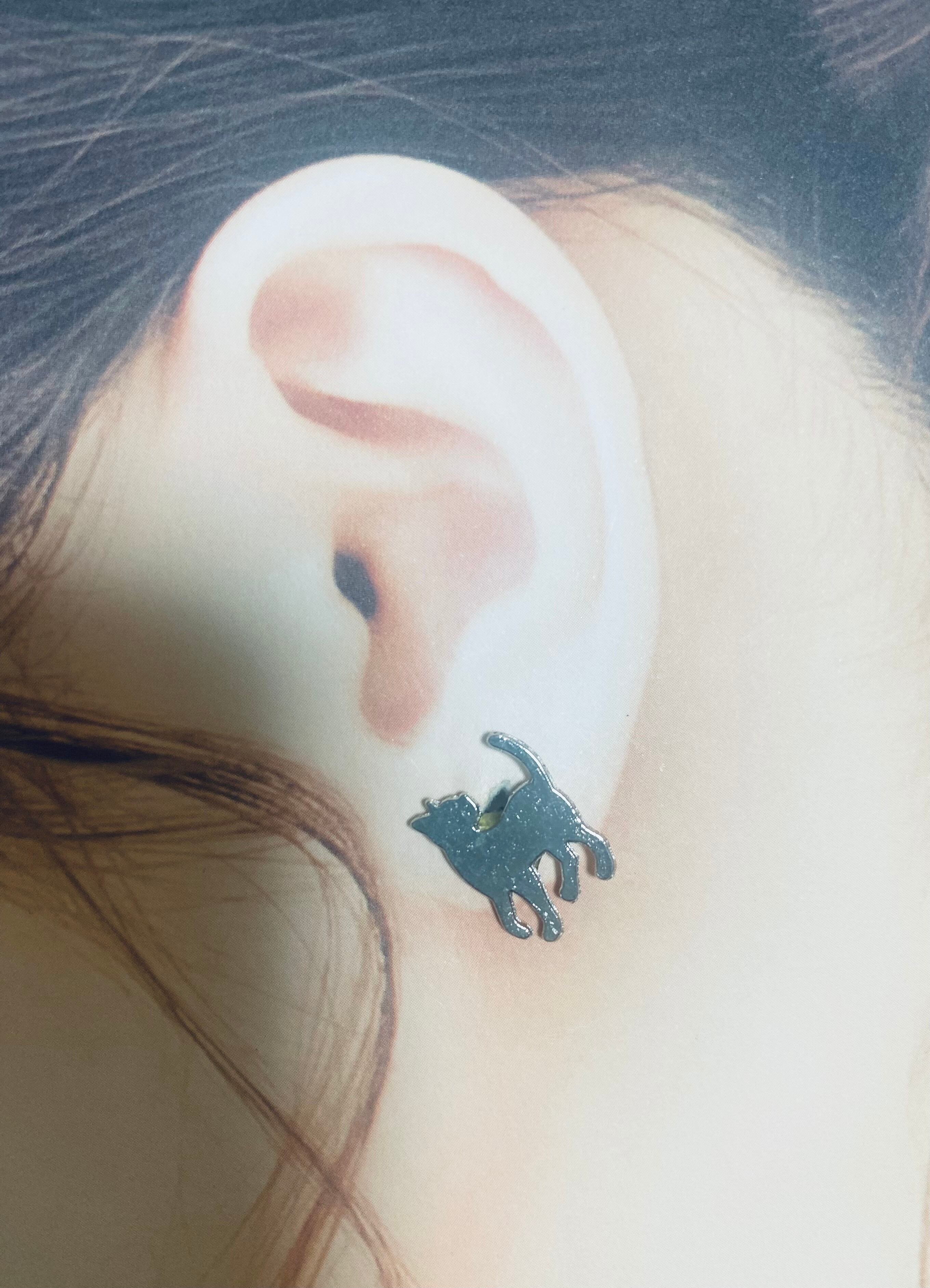 以前ブラックの猫ちゃんピアスを作りましたが、シルバーカラーはいかがでしょうか?