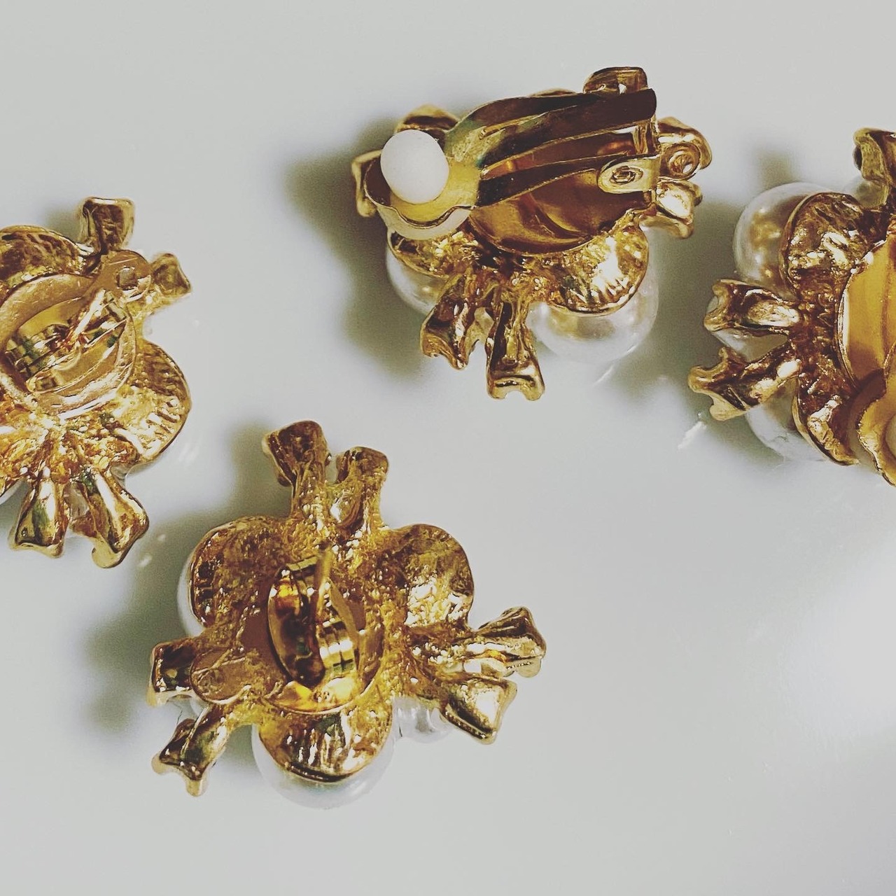大きさの違うパールやビジューを集めたイヤリングとピアスです( ´ ▽ ` )