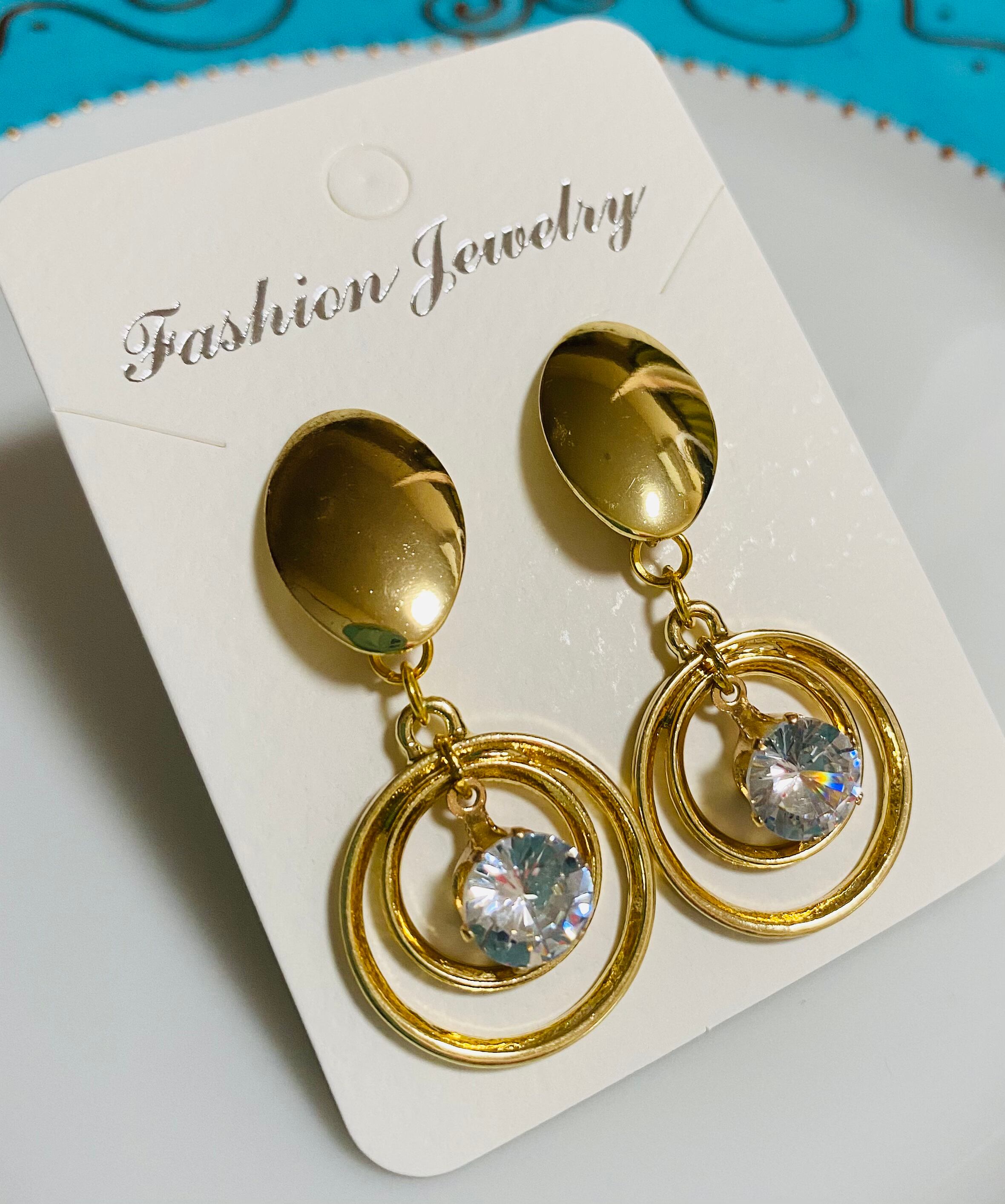 ゴールドのカボションに、ゴールドのリングときらきらビジューチャームを合わせたピアスです(^ ^)