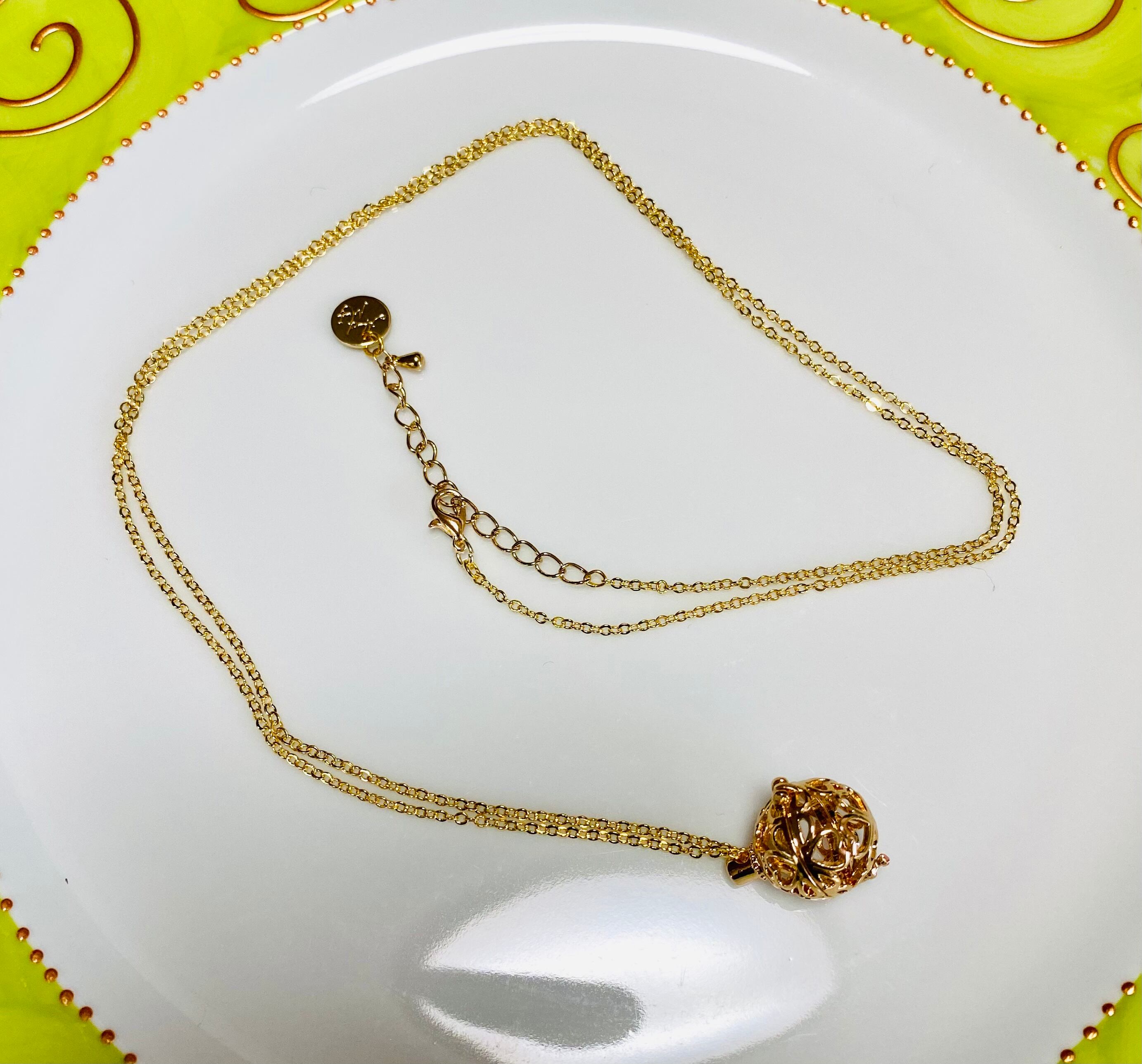 アロマを含ませた綿花を入れれるロケットを付けたペンダントです。