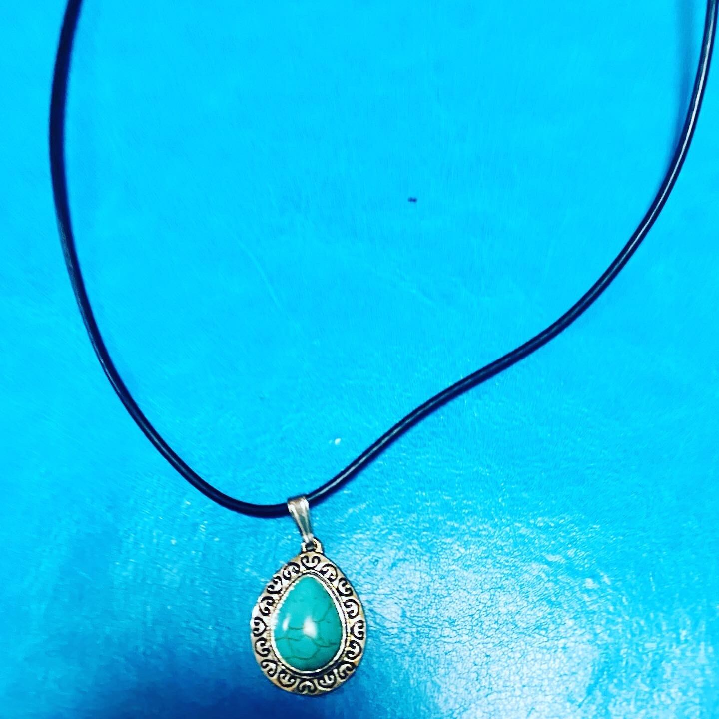 ターコイズのペンダントトップのブラックレザータイプのペンダントです(=´∀`)