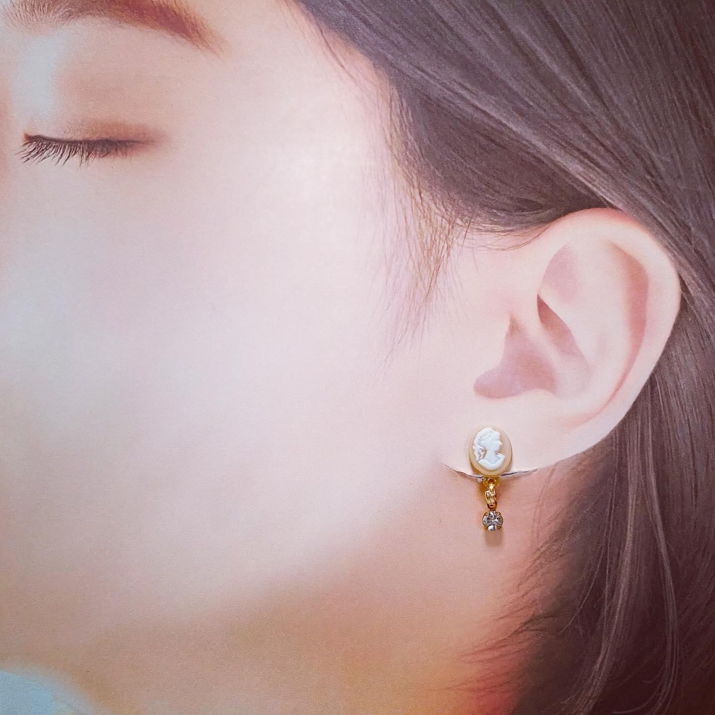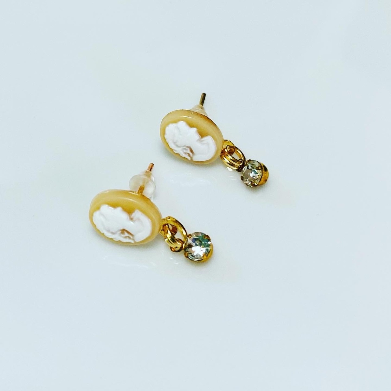 ちぃちゃなカメオのような カポションに、きらきらビジュー一粒付けたピアスです♡