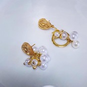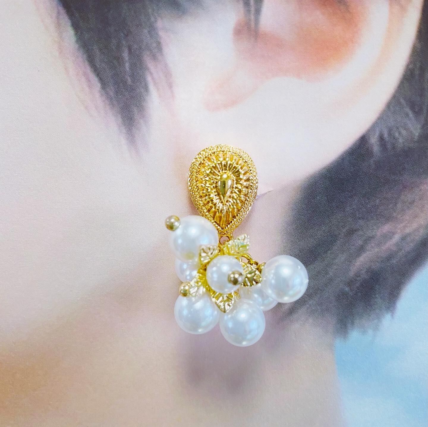 さて、ゴールドのピアスに左右アシンメトリーにパールをつけてみました。