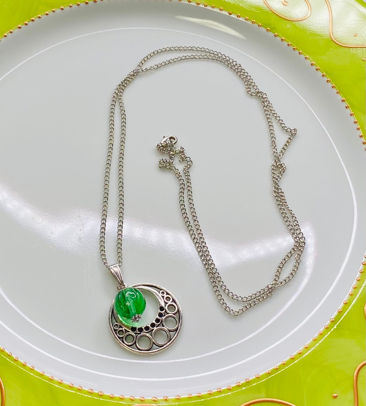 ラウンドのトップにグリーンのランプワークを合わせたのロングペンダントです( ´ ▽ ` )