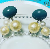 ブルーの カポションに、16mm、12mm、10mmのイミテーションパールを合わせたピアスです。