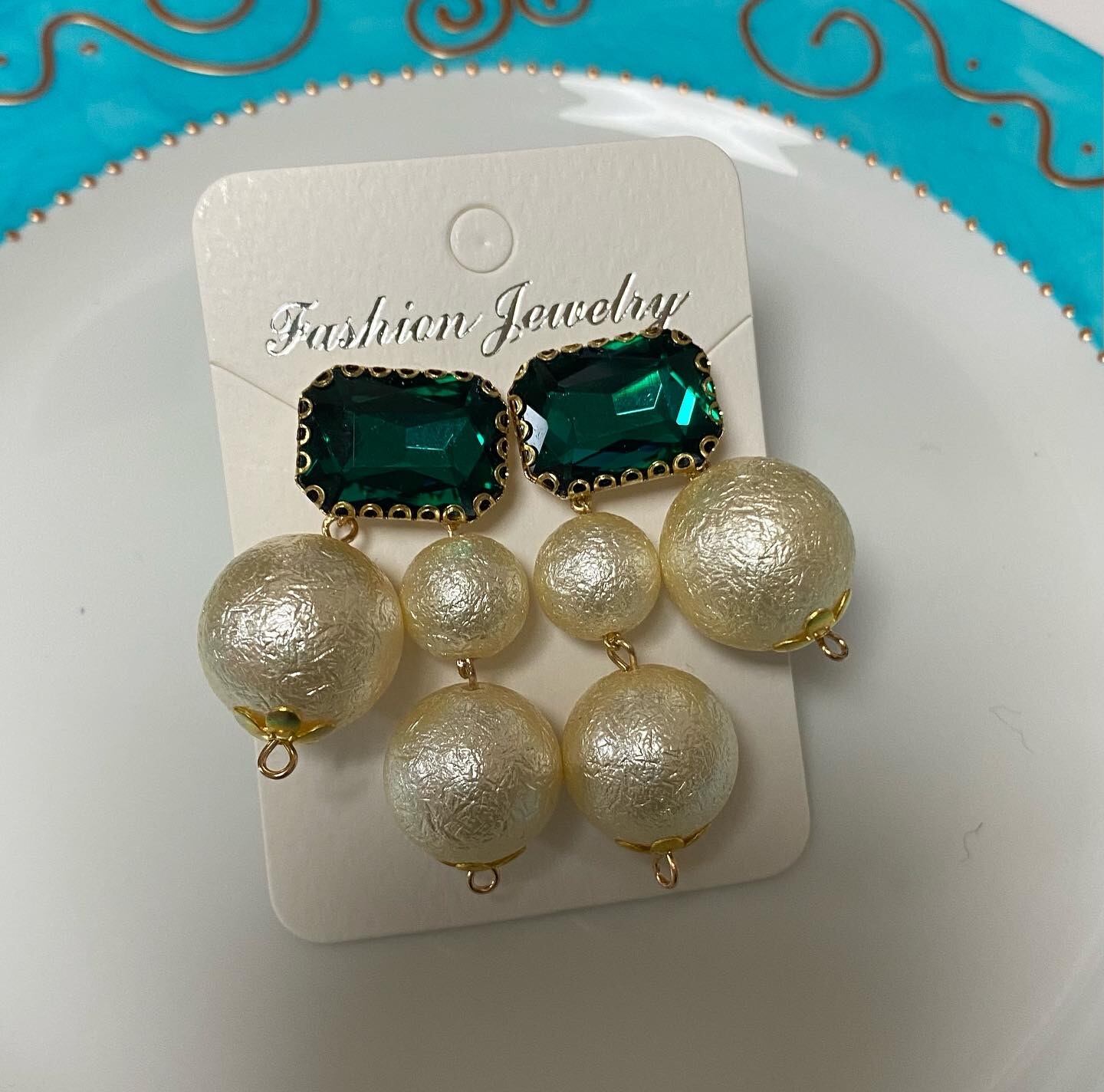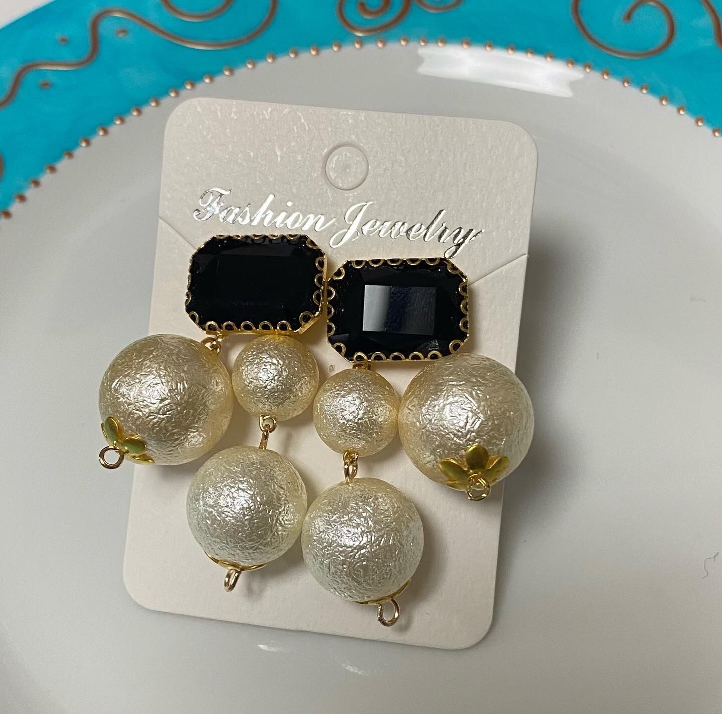 長方形のカポションに、18.16.12mmのコットンパールを合わせました。