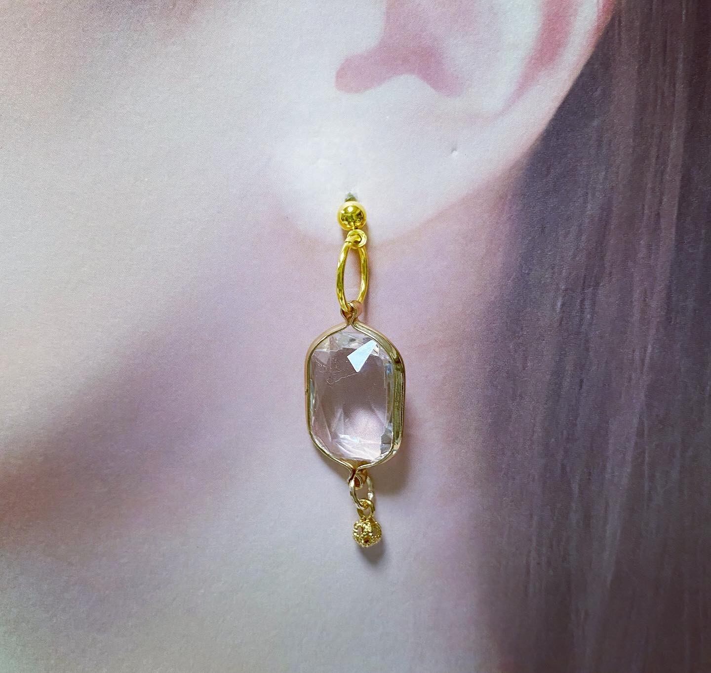 光を反射してキラキラ光る多面カットのクリアビーズを合わせた、ピアスとイヤリングです。