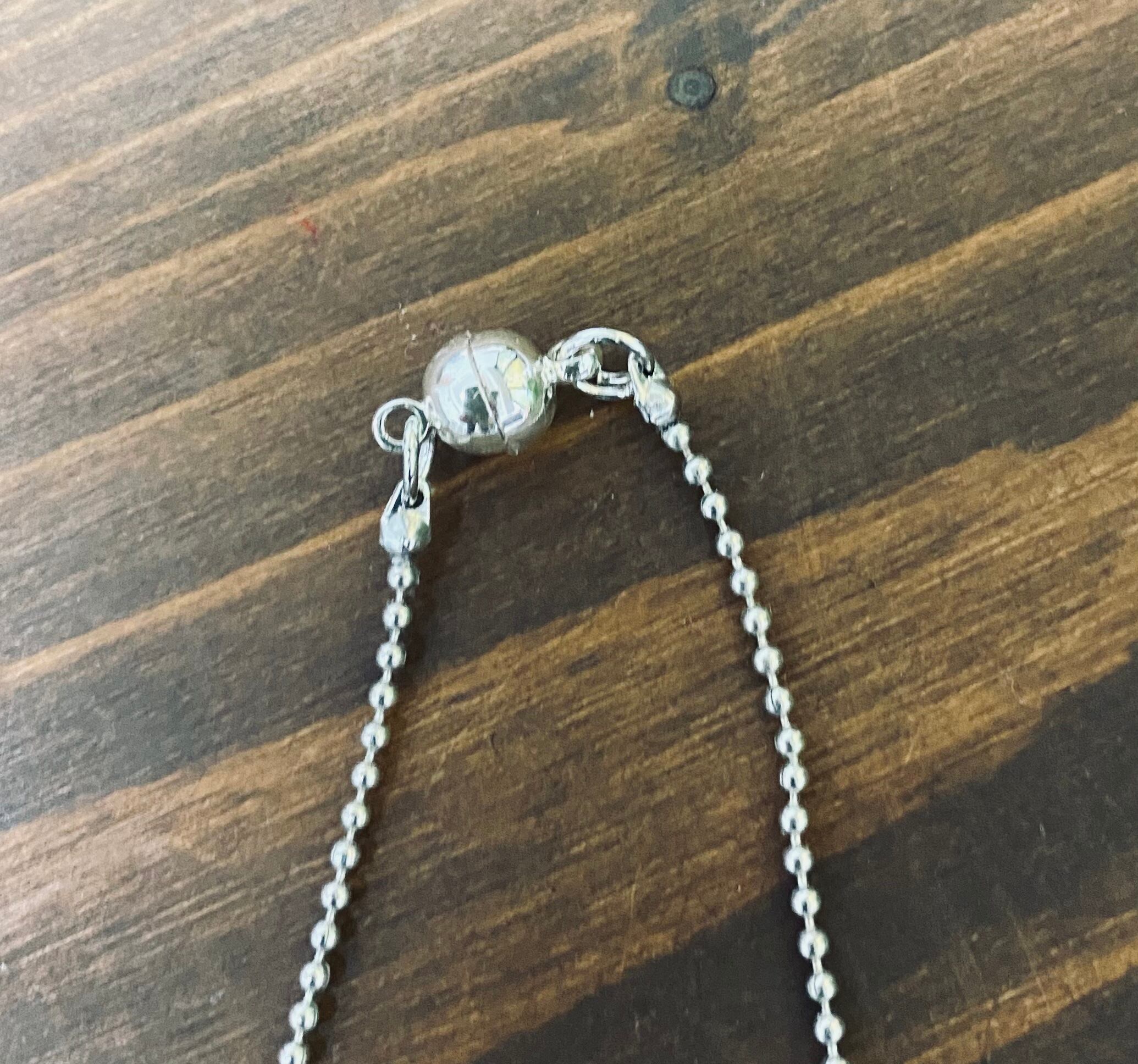 留め金はマグネットにしていますので、後ろでパチっとすぐ止まって、金具を合わせにくいと言うストレスがありません。