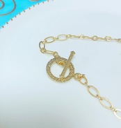 約5〜6mmの淡水パールとゴールドチェーンを合わせたネックレスに、トップにカメオタイプのモチーフとシェルタイプのチャームを合わせました。