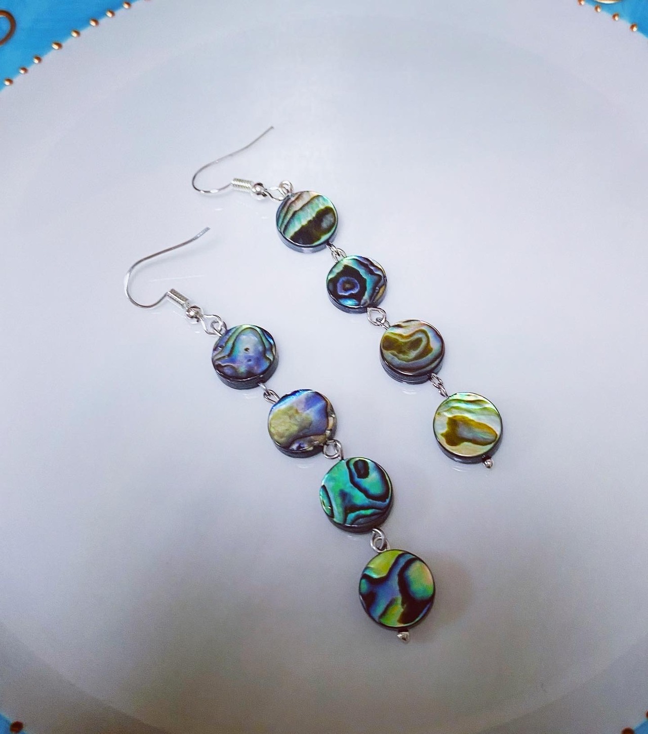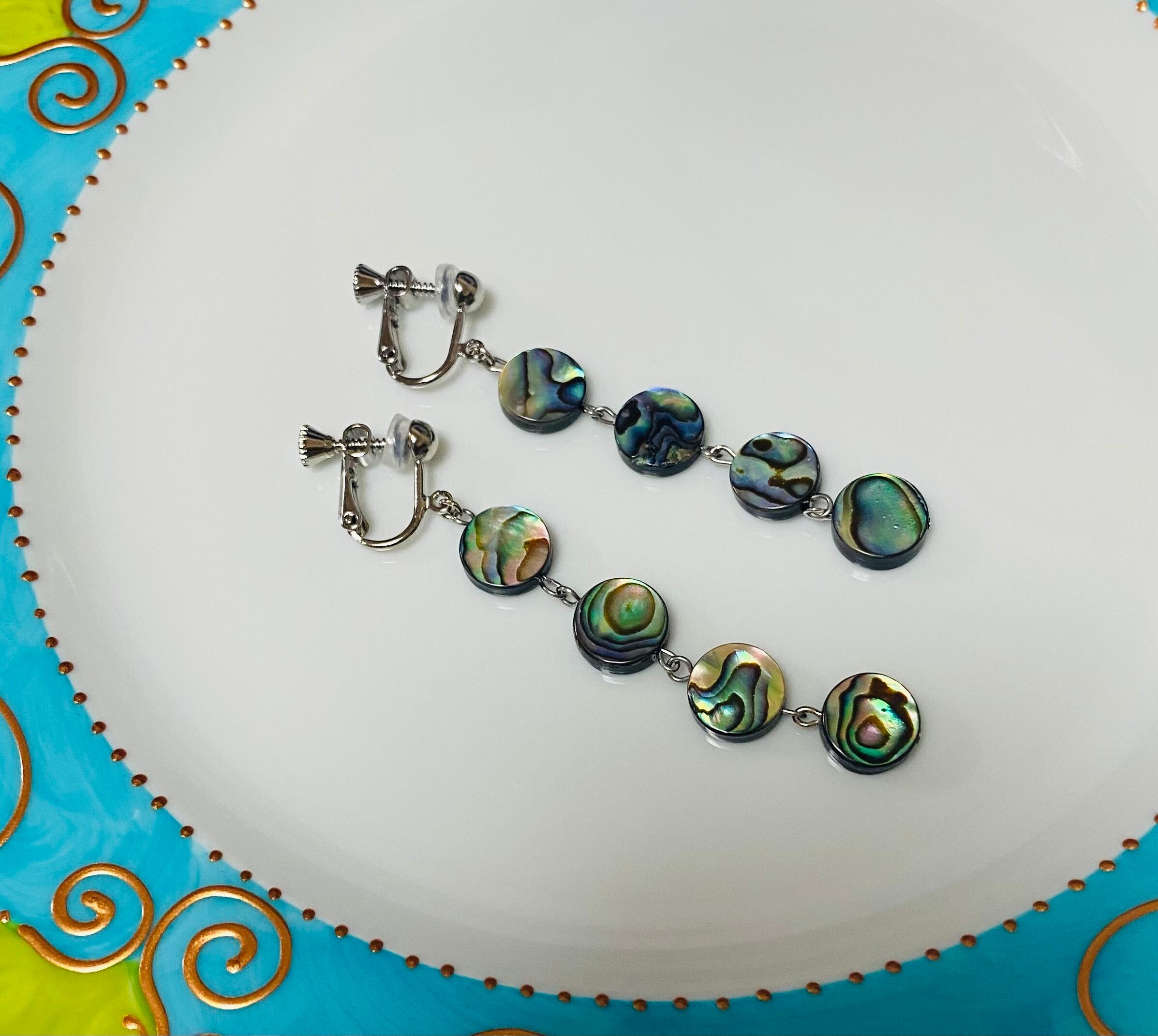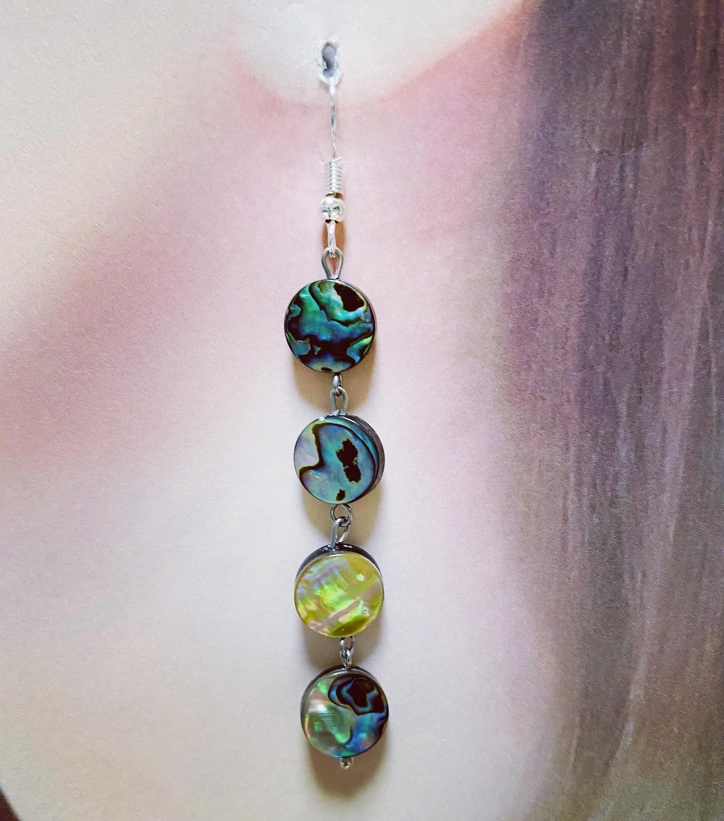 アバロンシェルビーズを4つ合わせたロングピアスイヤリングです。
