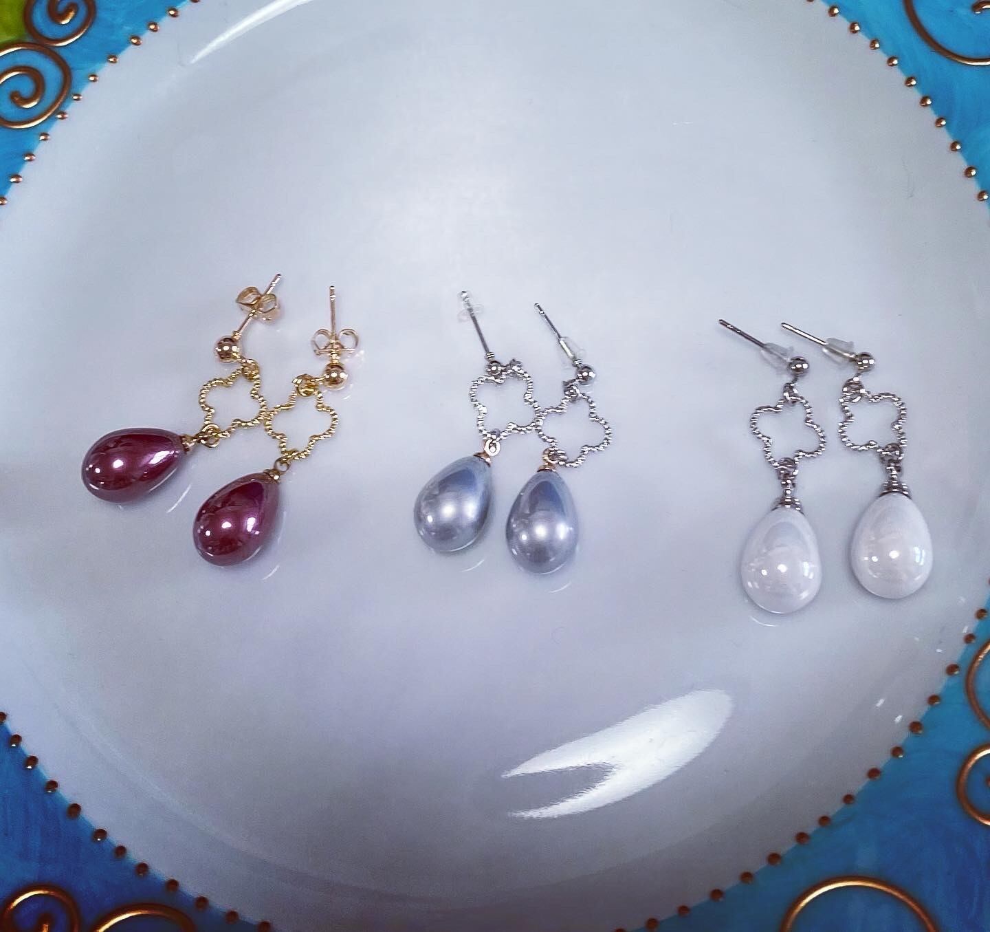 クローバーフレームに3種類のカラードロップを合わせたピアスです。