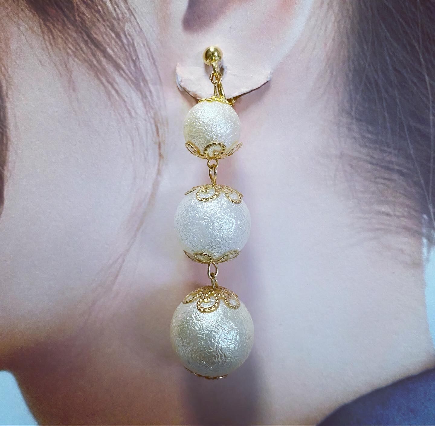 イヤリングには耳が痛くならないようにカバーをつけています。