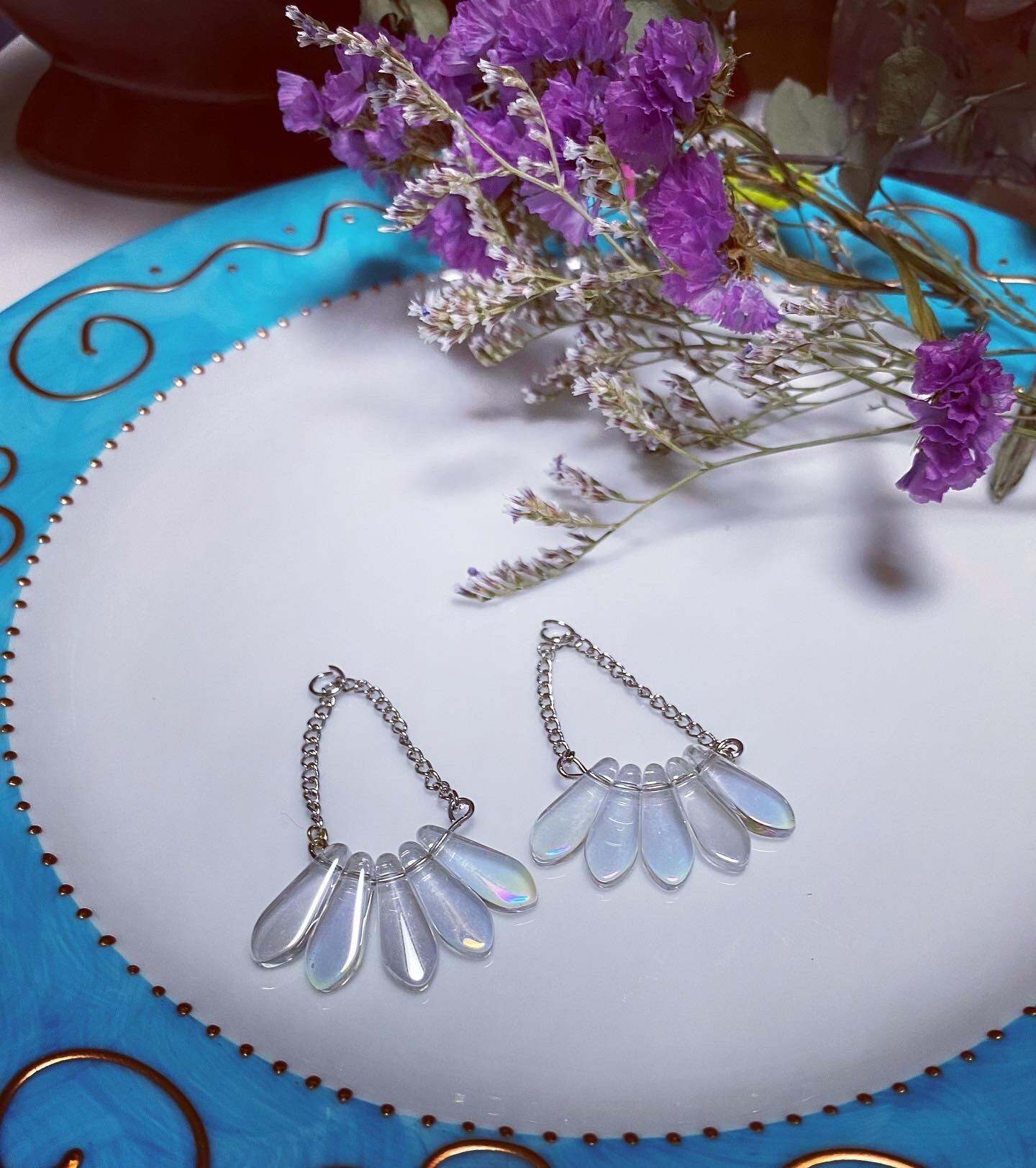 クリアビーズというかオーロラビーズを5個並べて、それにチェーンをつけたものです(^ ^)