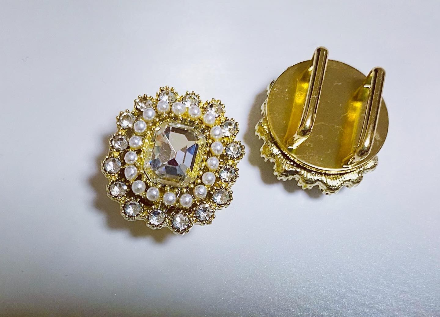 パールやラインストーンで飾られた、キラキラする帯留めです( ´ ▽ ` )