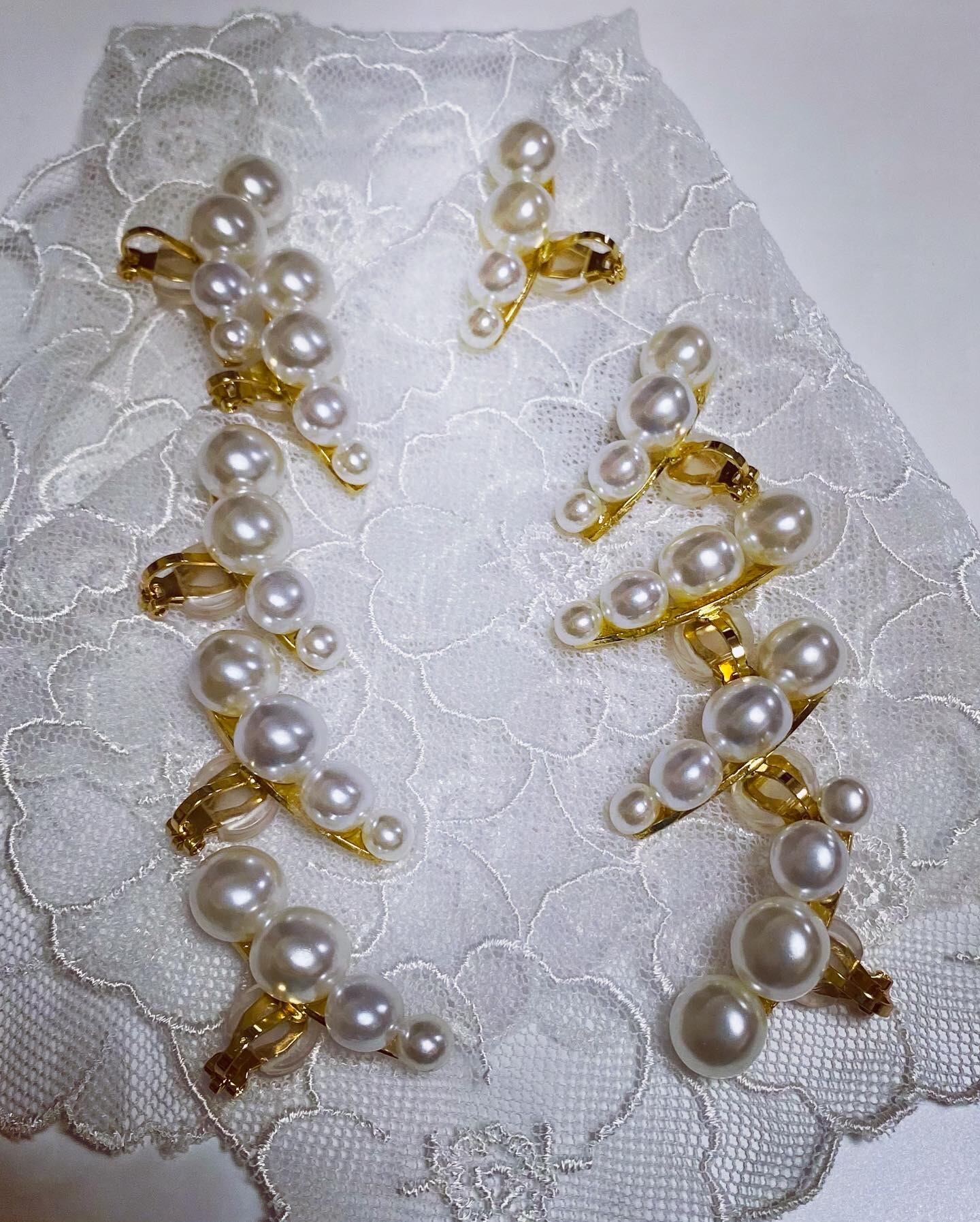 10mmと8mm.6mmのパールを並べたイヤークリップです。