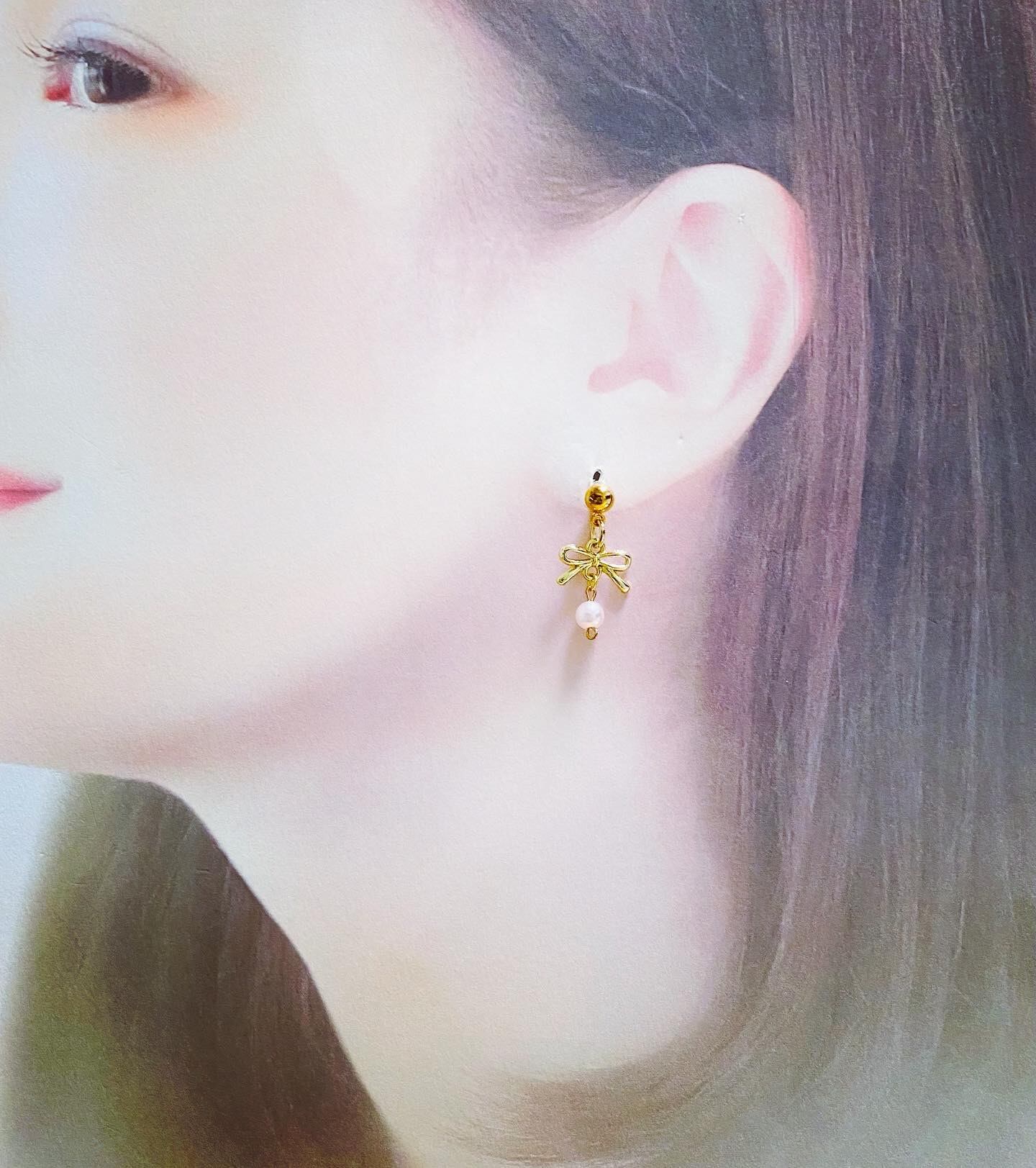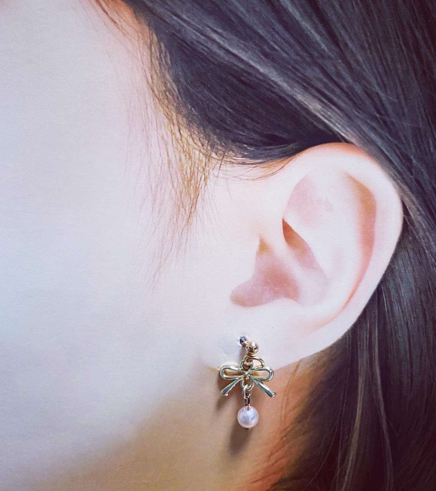 #リボンピアスにパール