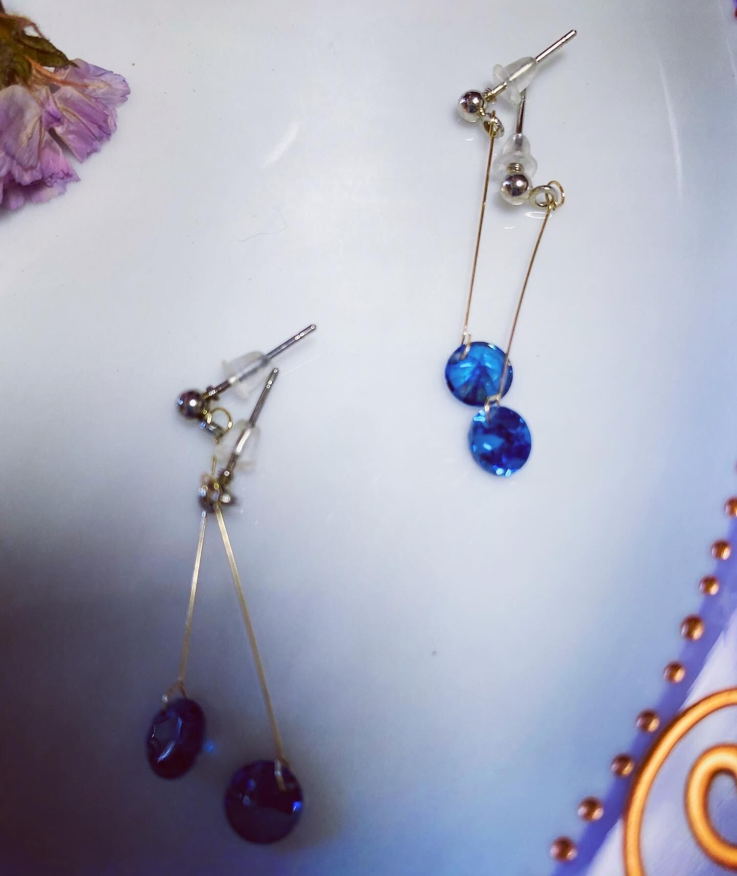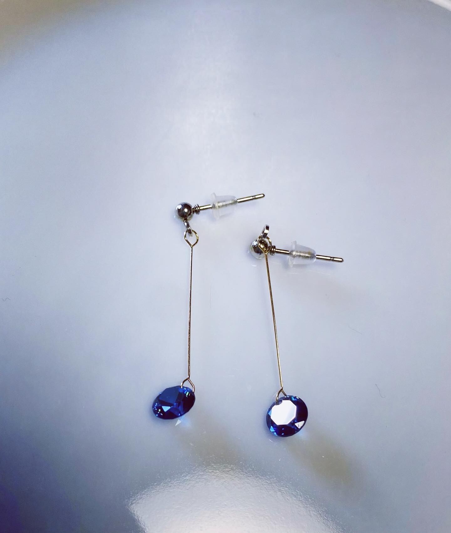 ロイヤルブルーのガラスチャームが揺れて綺麗♡