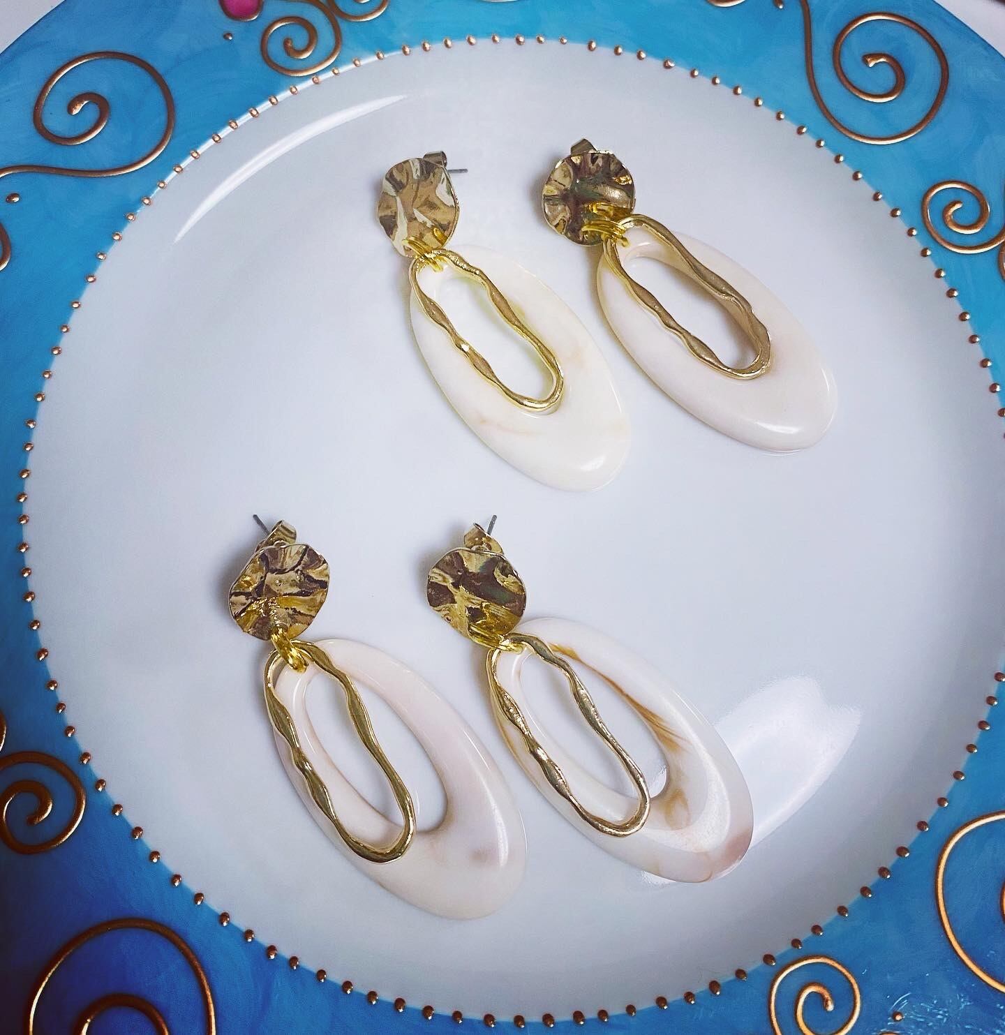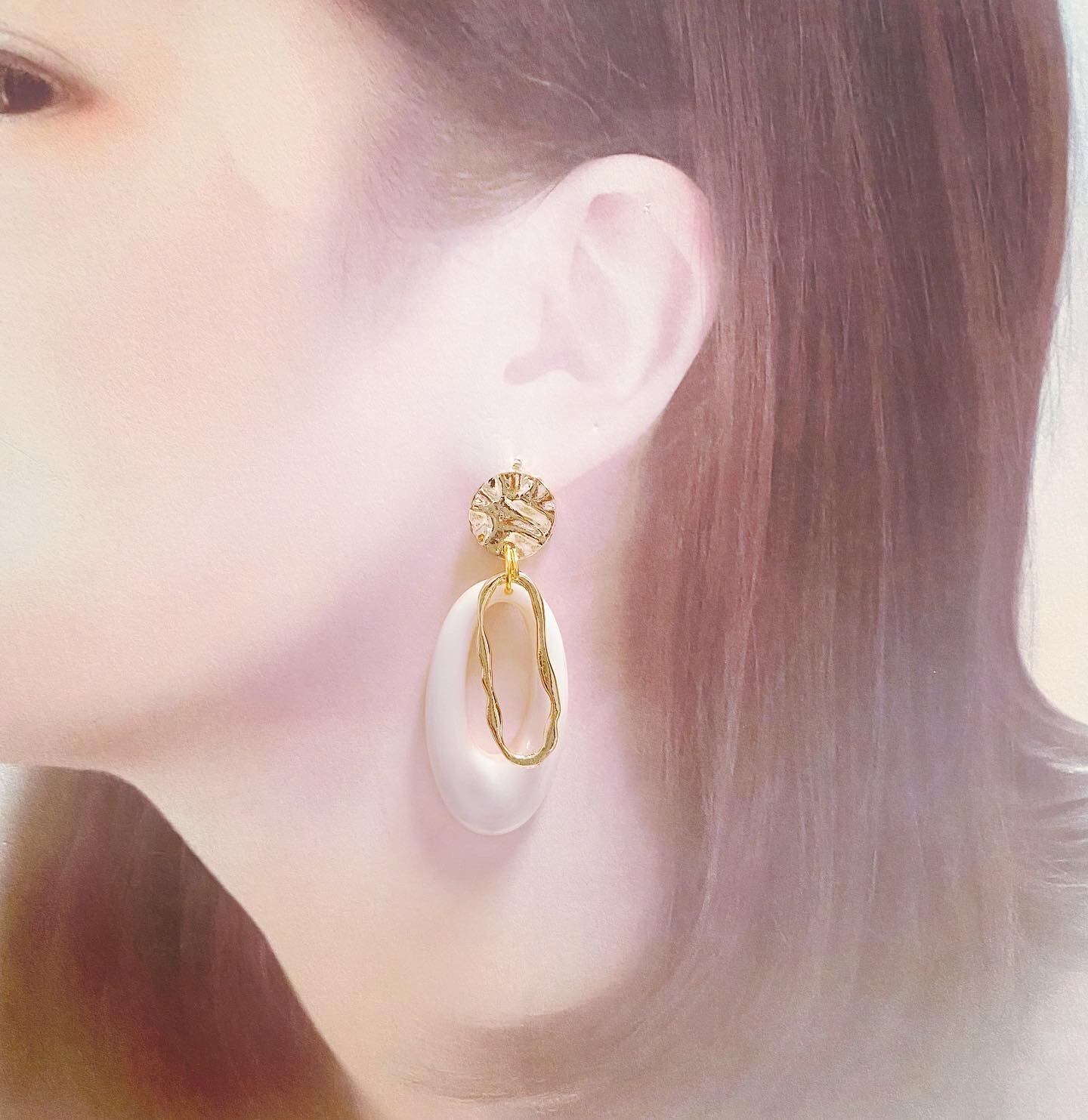 象牙様のオーバルのチャームにゴールドを合わせたピアスです( ´ ▽ ` )