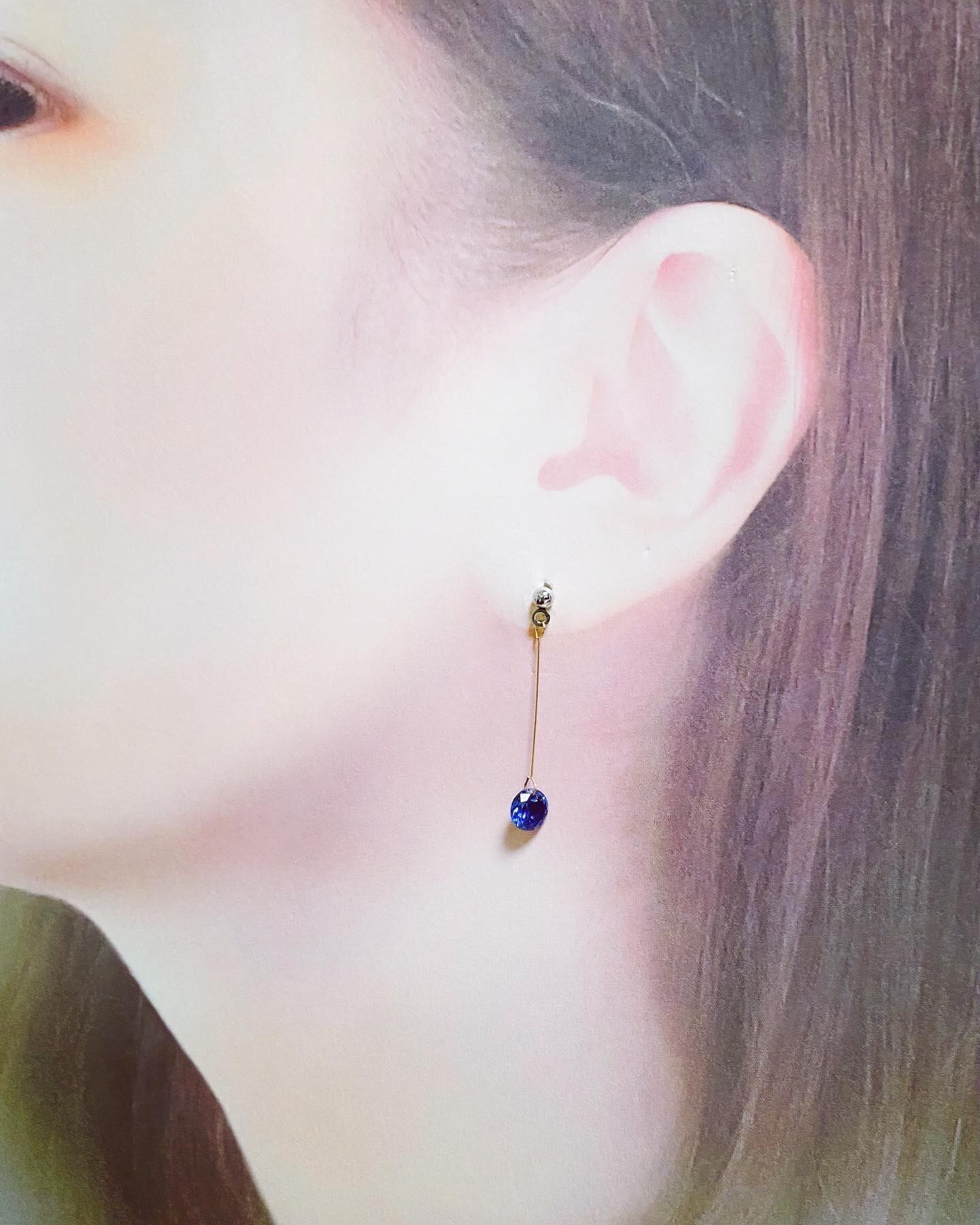 綺麗な色のガラスビーズをピアノ線で繋いだピアスです( ´ ▽ ` )