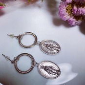 イミテーションのシルバーリングとメダイ(マリア様)を合わせたピアスです( ´ ▽ ` )