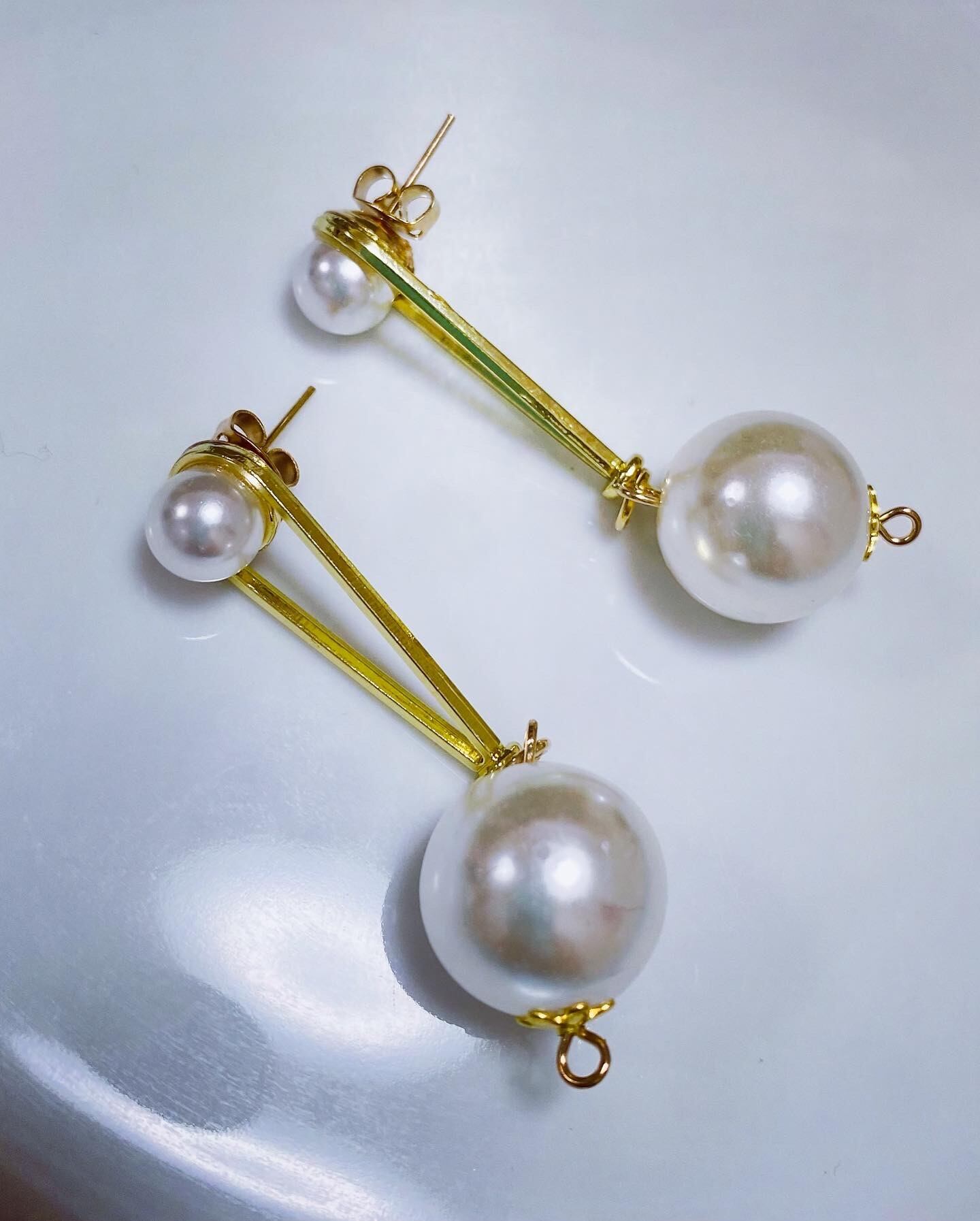 パールとV字型の金具に、16mmなイミテーションパールを飾ったピアスです。