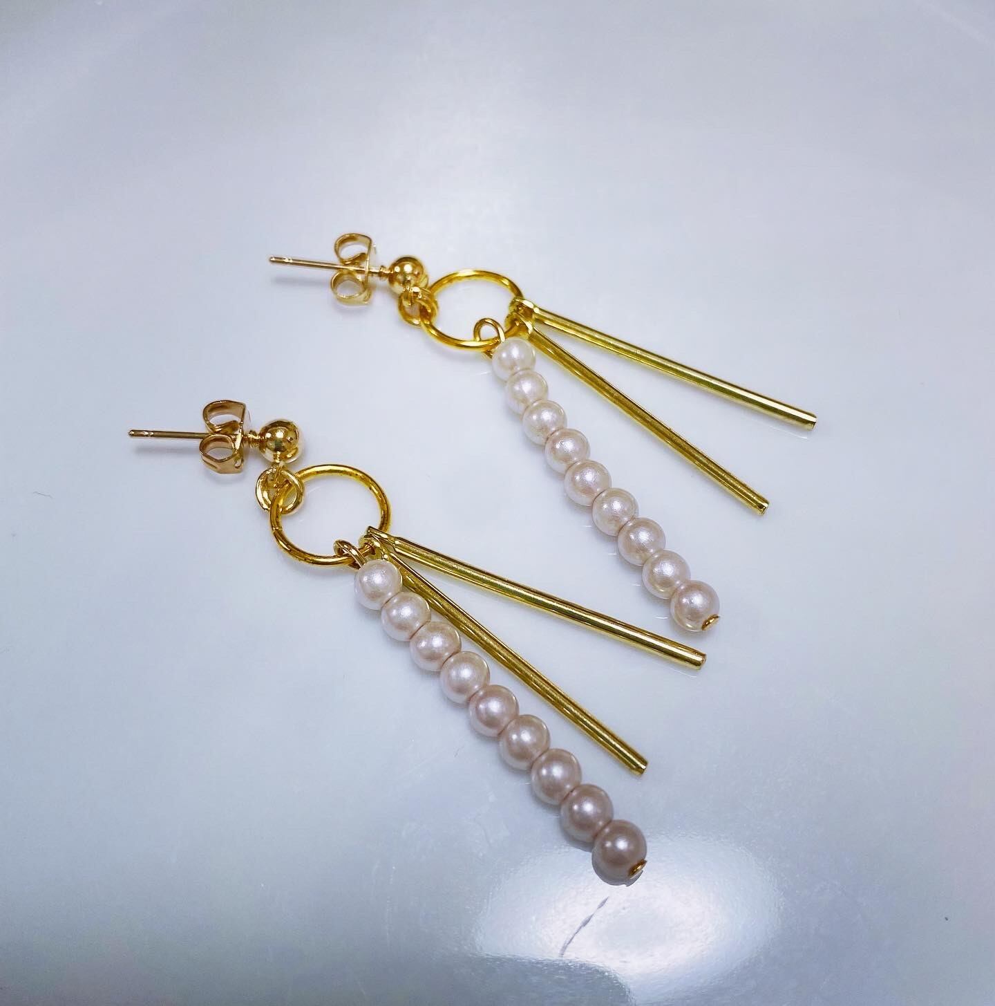ゴールドカラーのバーとパールをバーにしたものを合わせたピアスです。