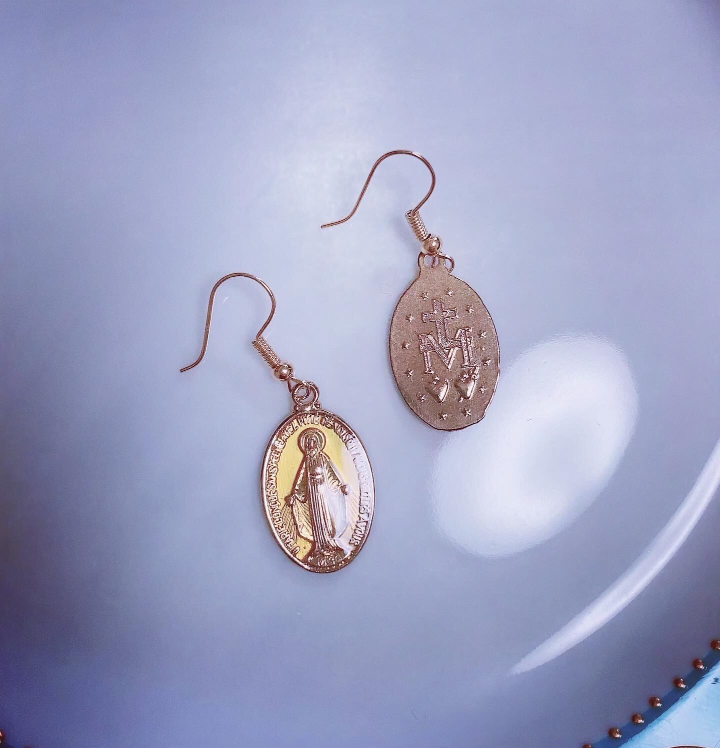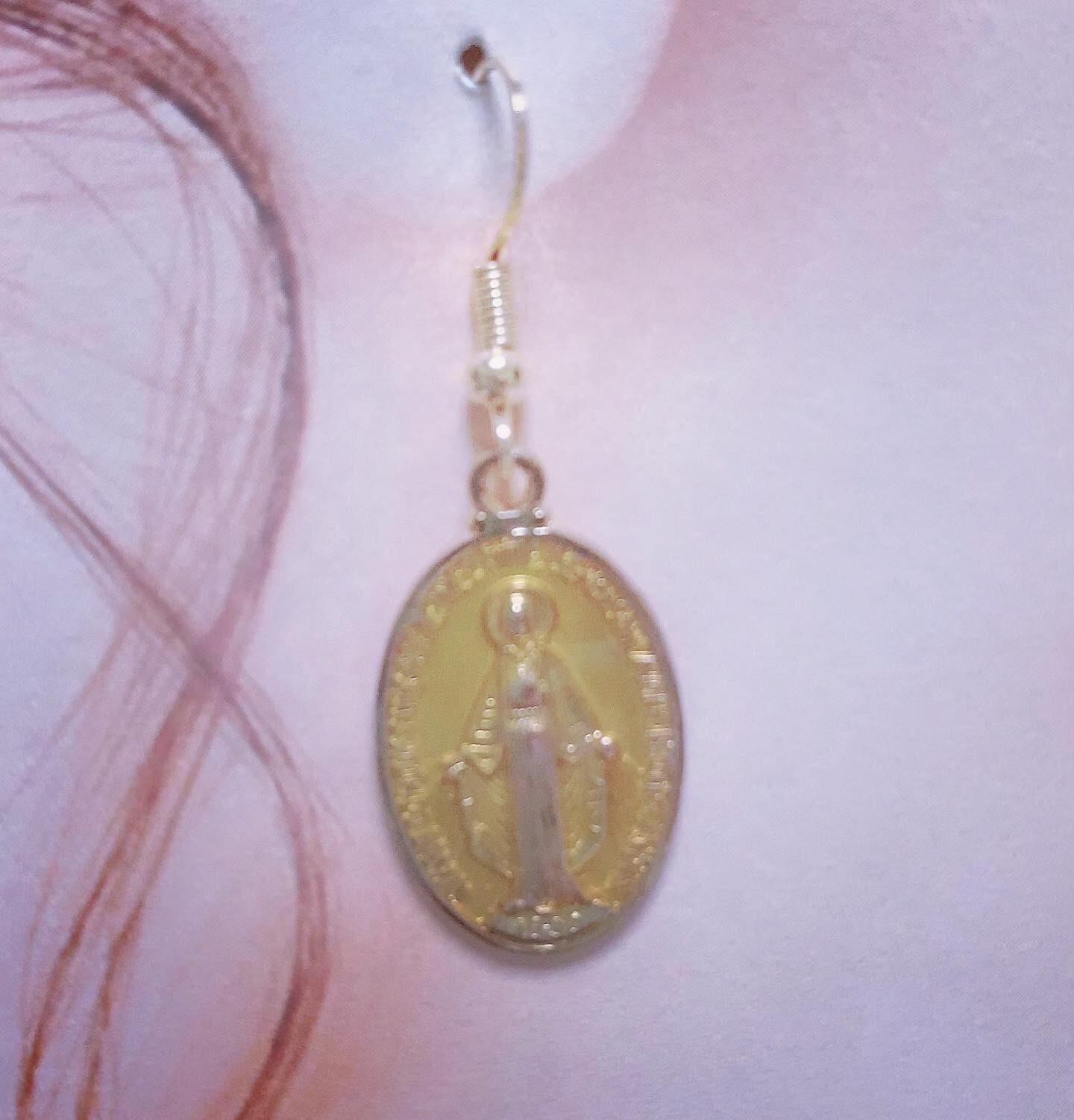イエローのマリア様メダイのピアスです(^^)