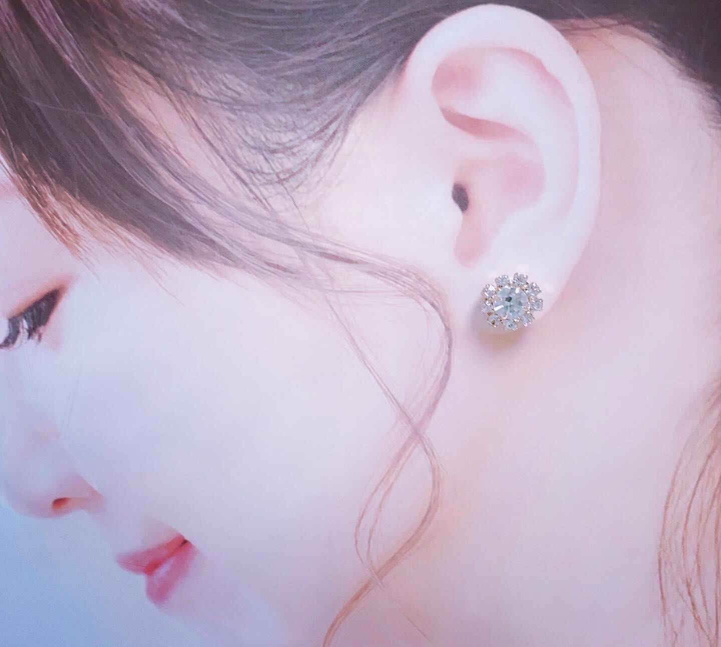目立つ大きさでもなく、でも耳元で光を放ち綺麗なピアスです。