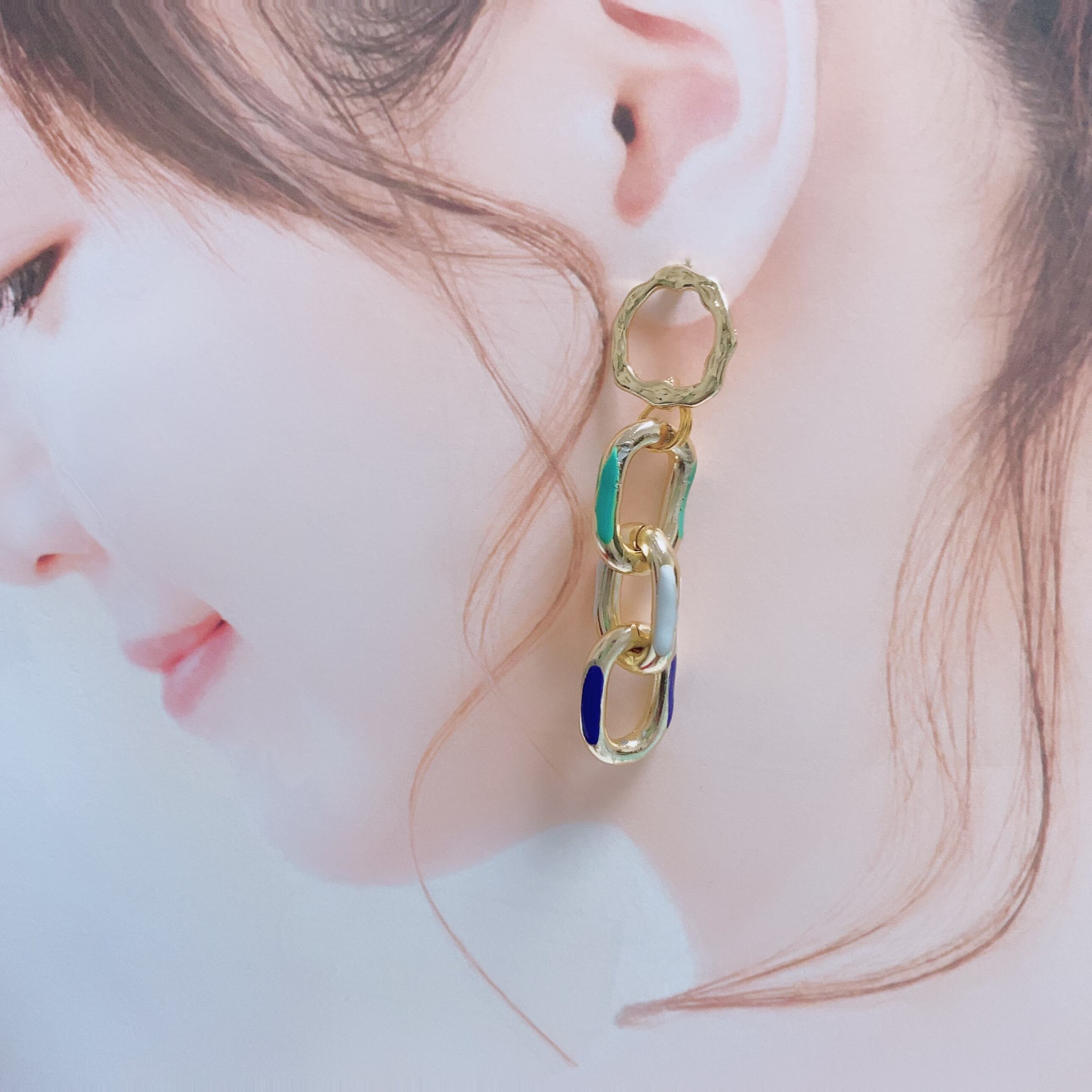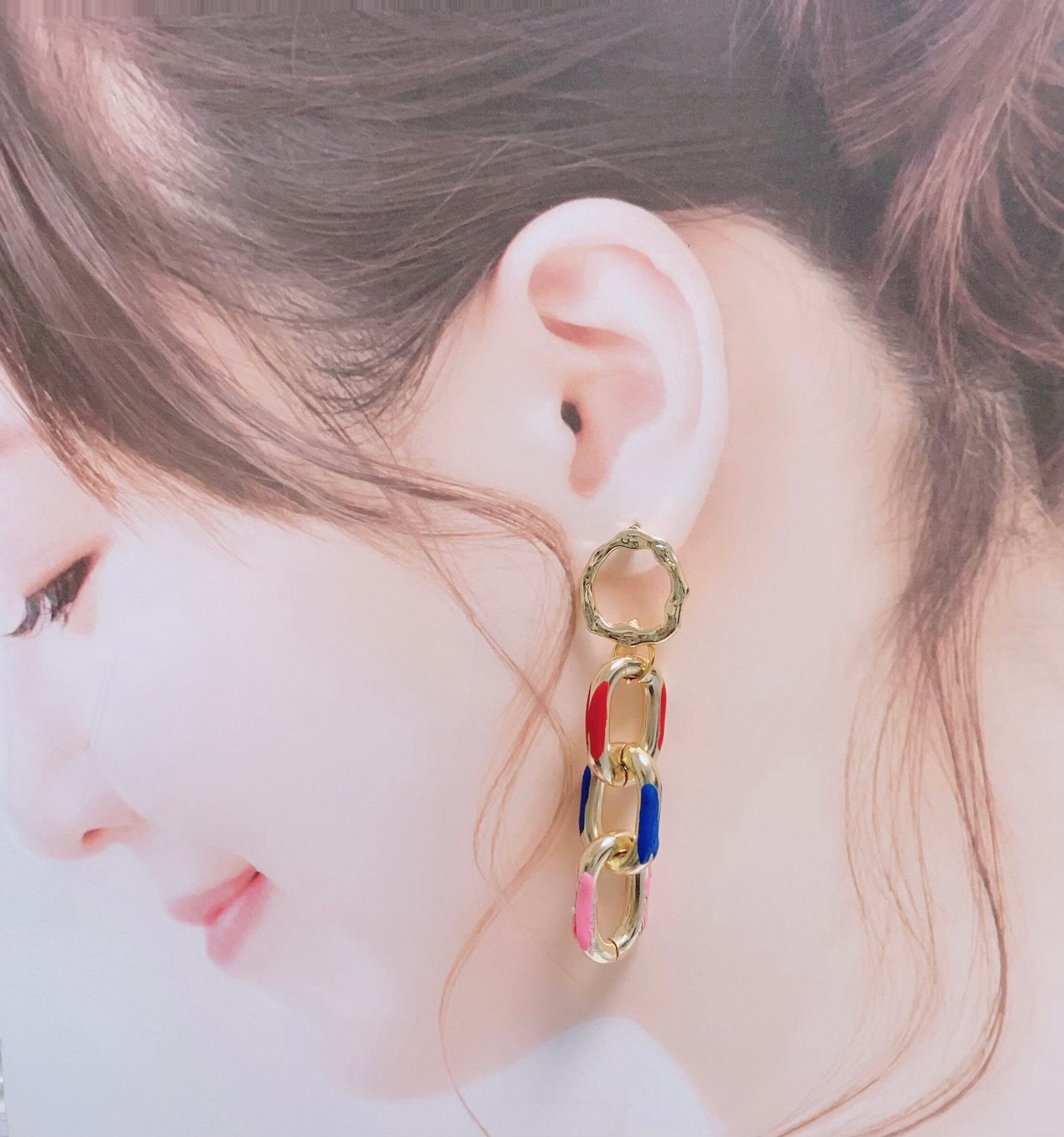 カラーチェーンを繋げたピアスです。