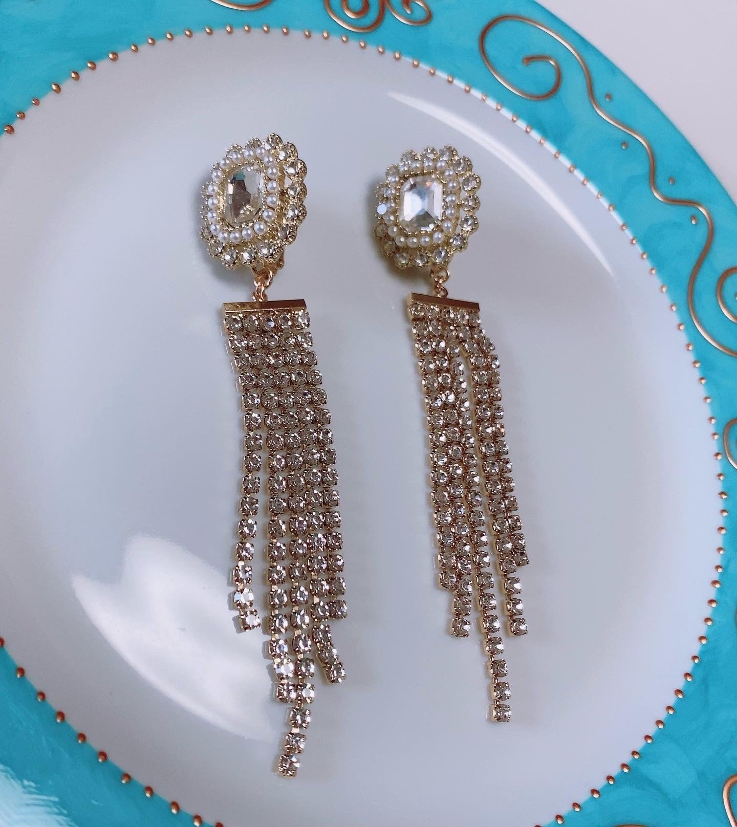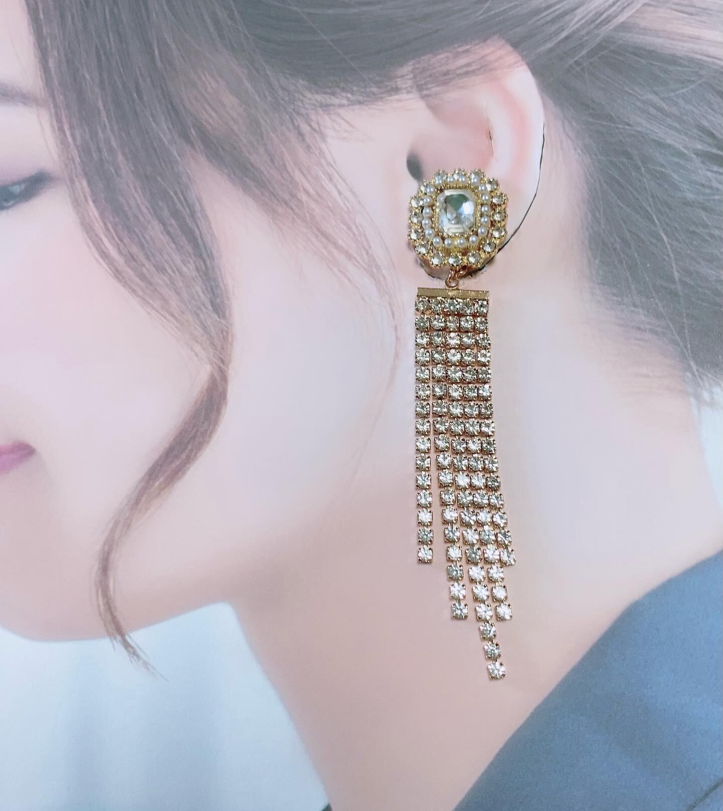 人気で売り切れていたラインストーンタッセルのイヤリング、再作成しました( ´ ▽ ` )