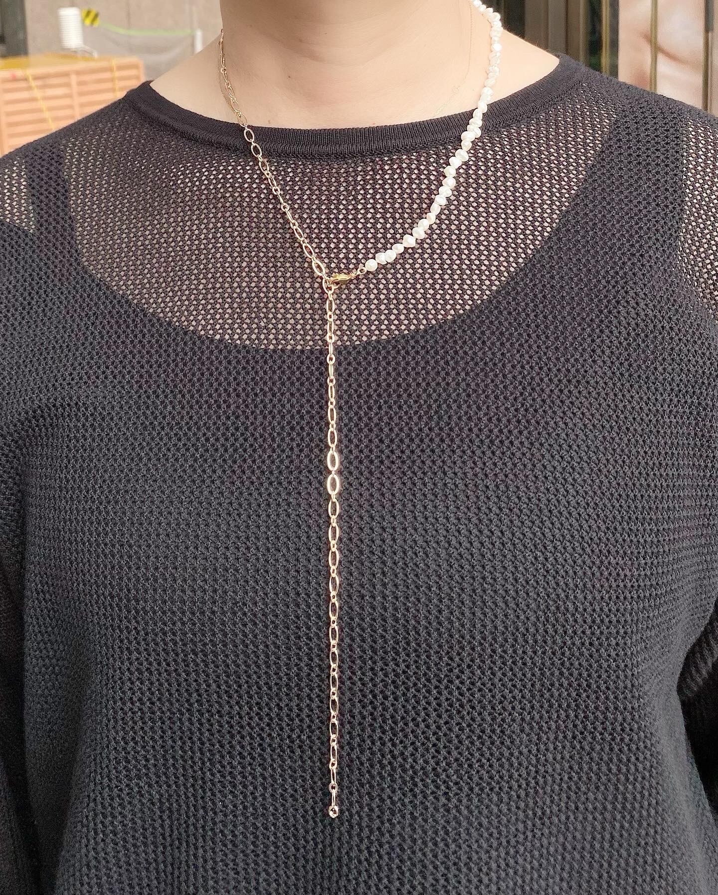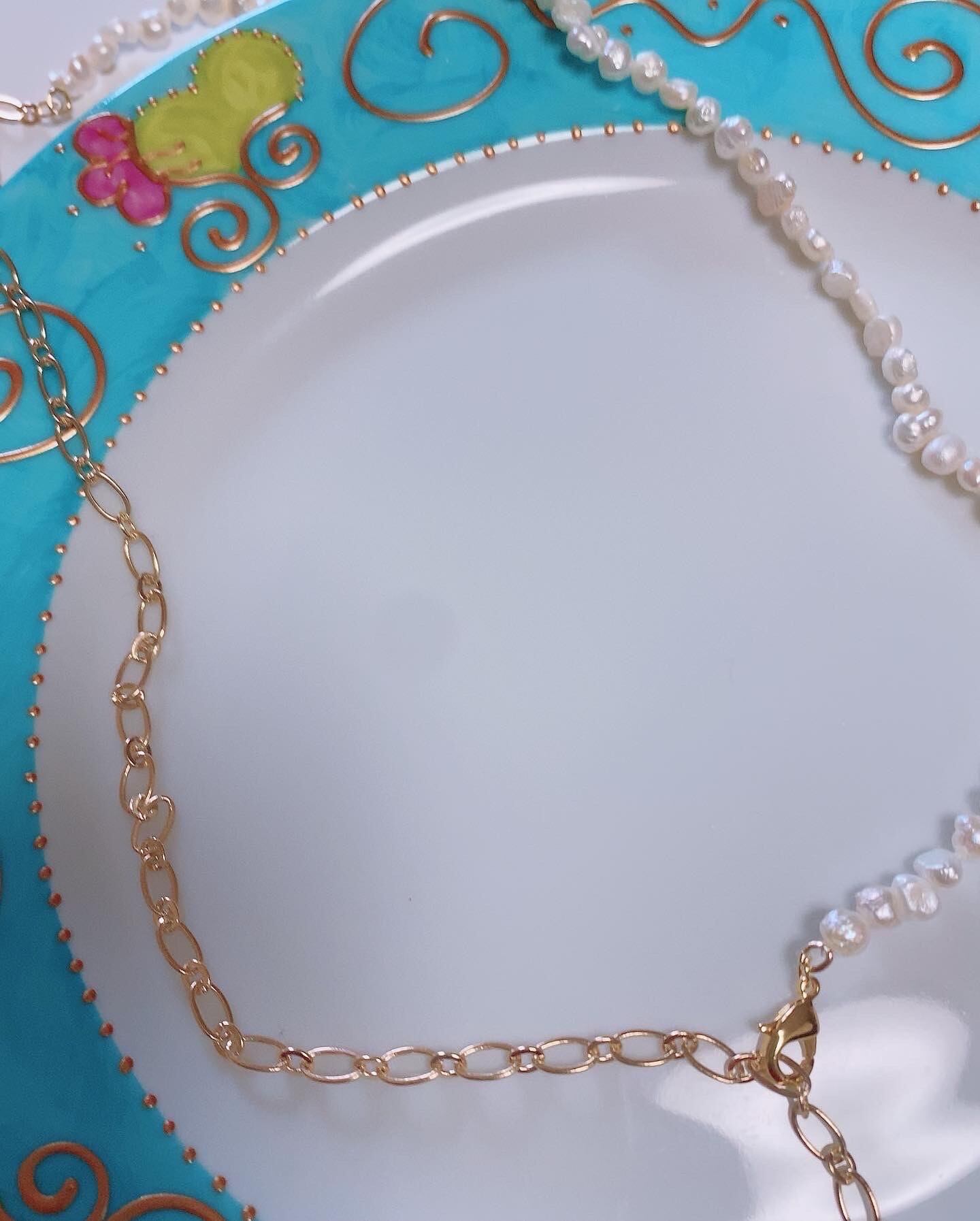 5〜6mm大の天然パールビーズとゴールドチェーンを合わせたネックレスです♡