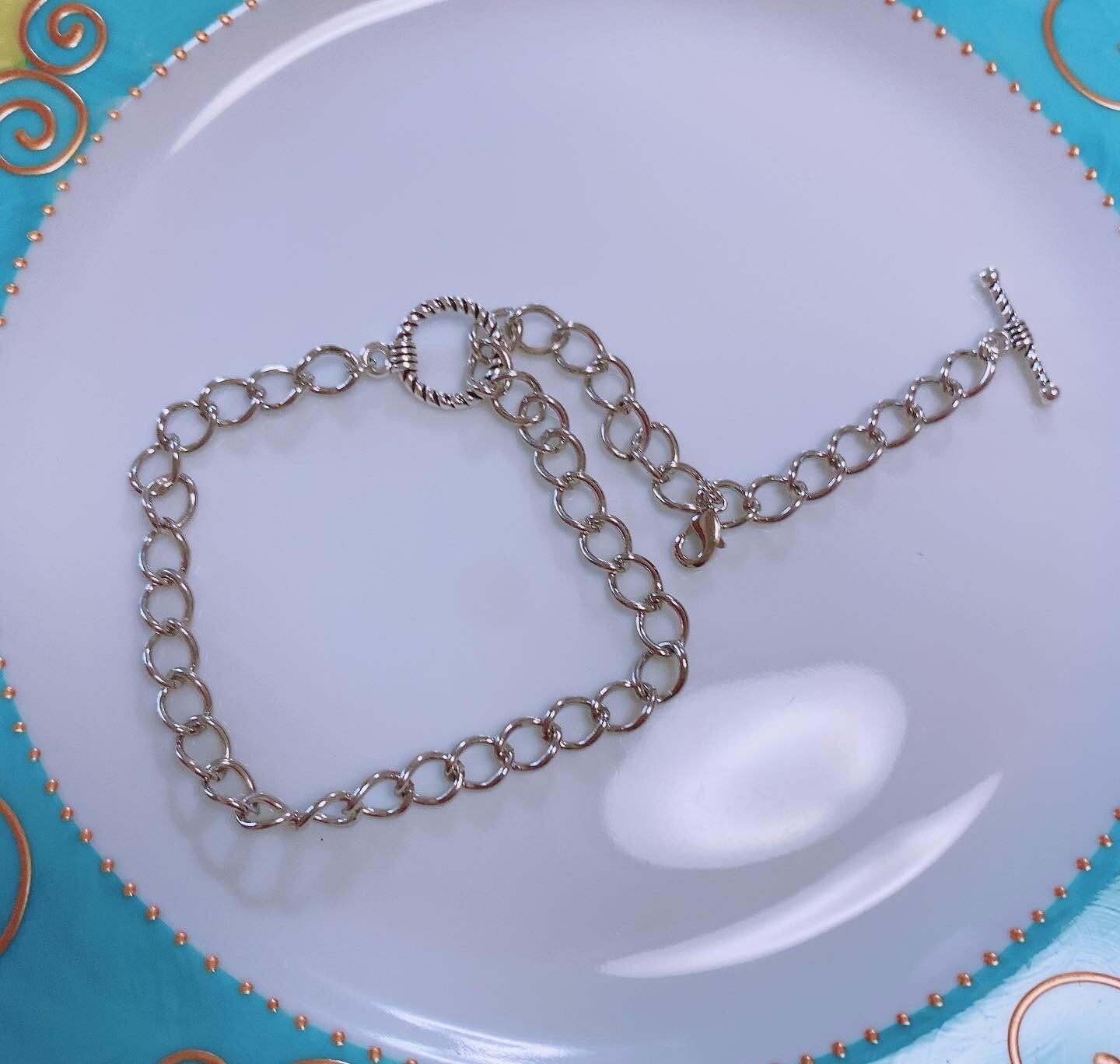 シルバーカラーチェーンに、マンテルを付けたブレスレットです。