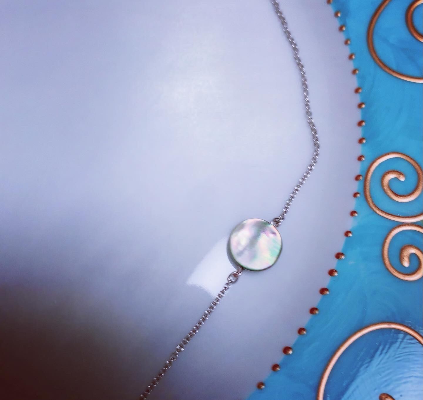 一粒アバロンシェルの良さを出すために、チェーンは短めにしています。