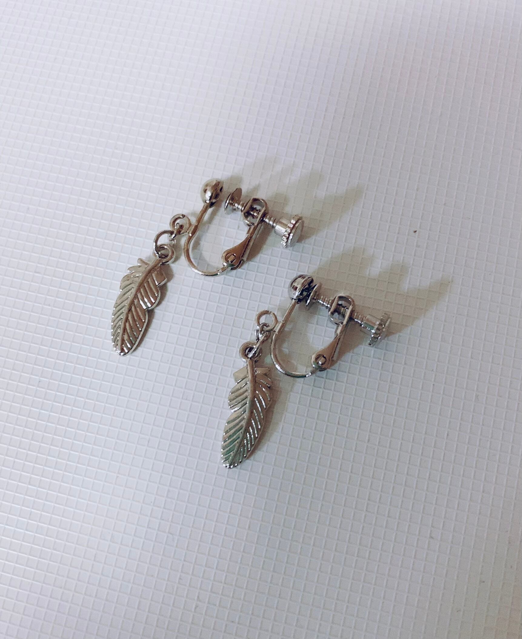 シルバーカラーのちぃさなフェザーをピアスとイヤリングにしました。