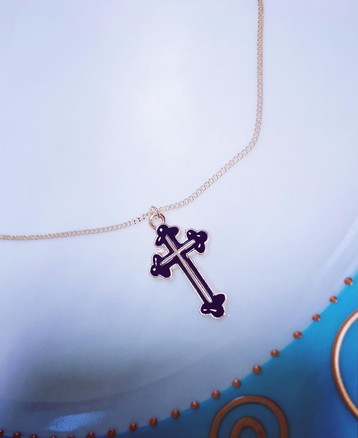 ブラックカラーがポイントの十字架を、ペンダントにしました。