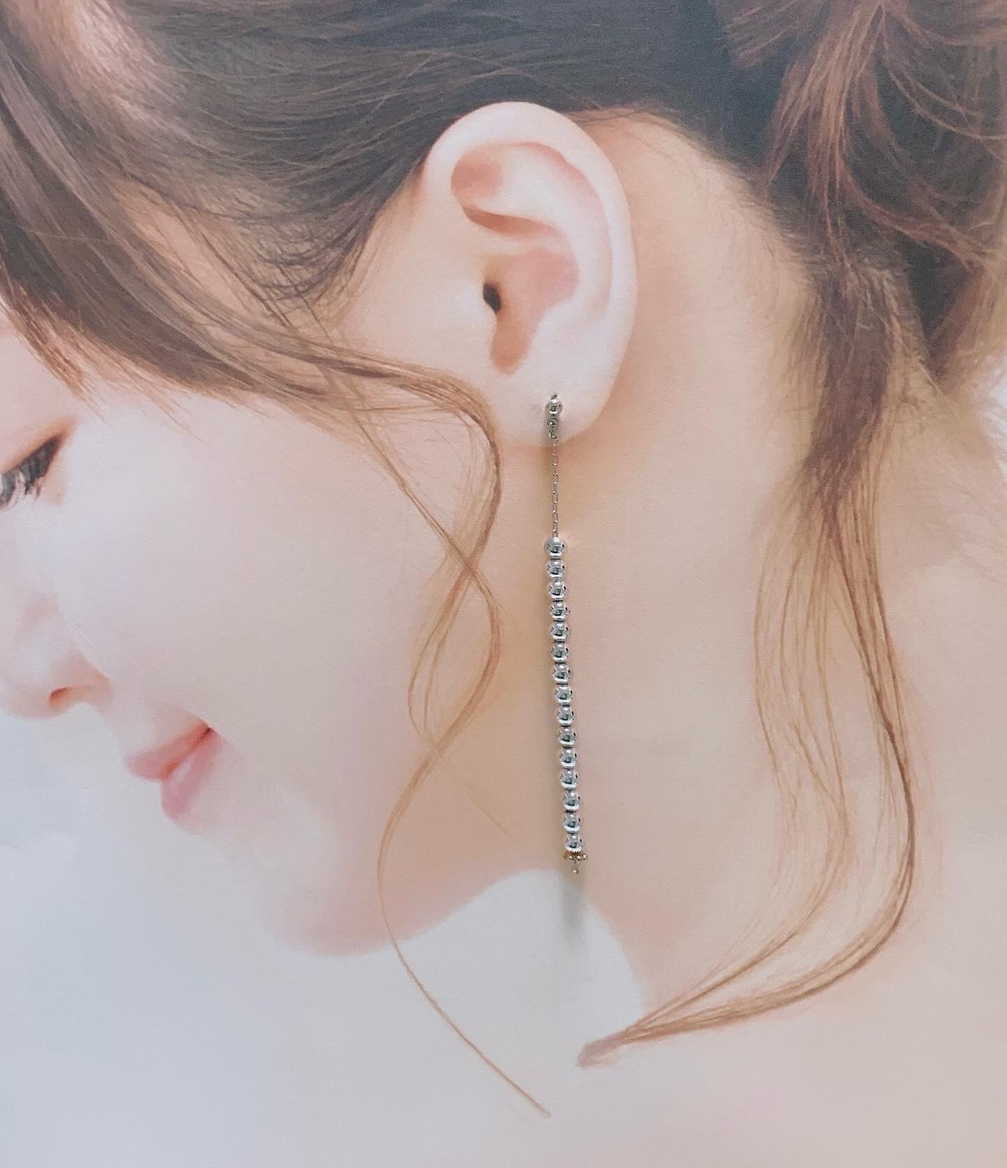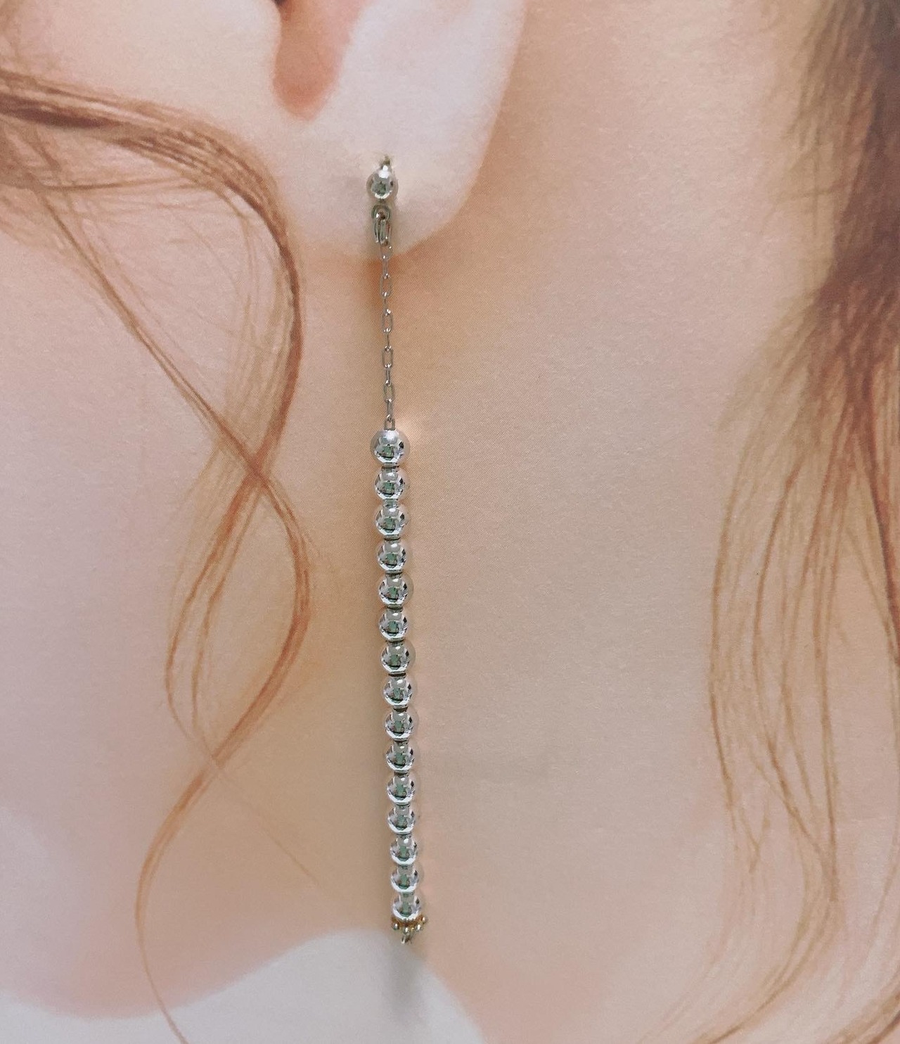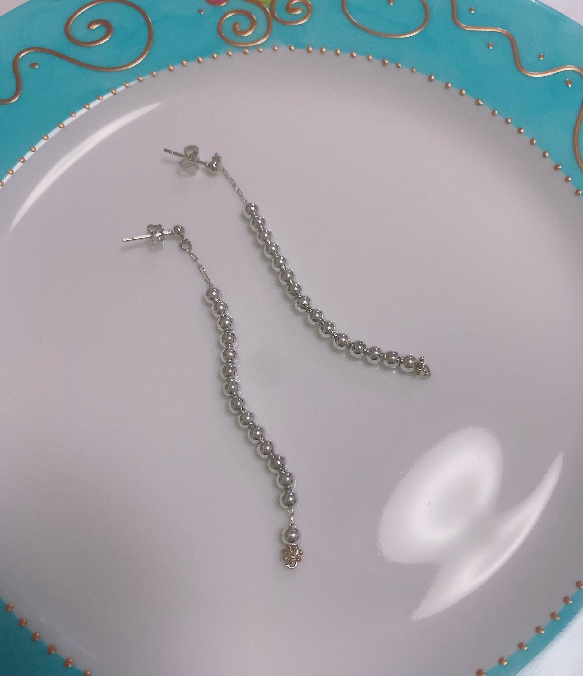 チェーンにシルバーボールビーズを通してピアスにしました。