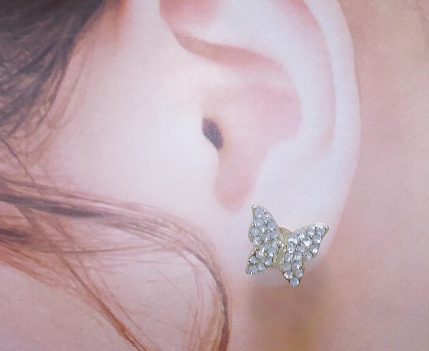 ラインストーンが散りばめられたバタフライを、レジンでぷっくりにしたピアスです。