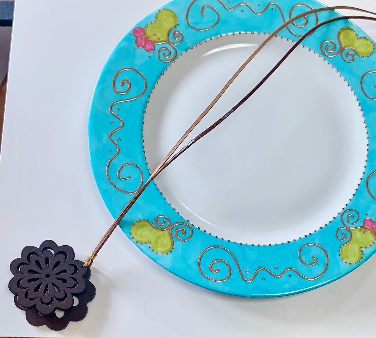 ブラウンの木でできたお花を二つ合わせて奥行きを出したロングペンダントです。