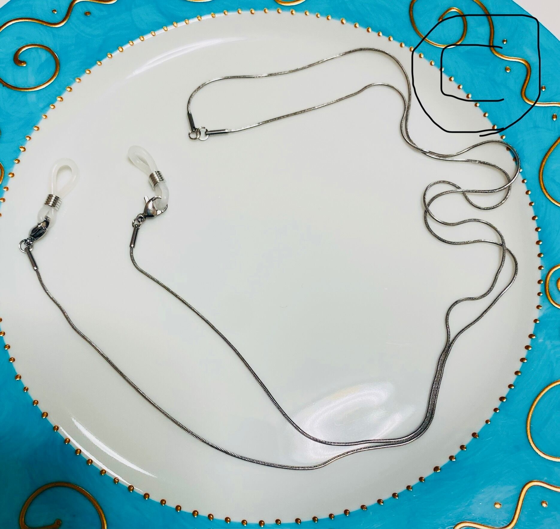 シンプルなシルバーカラーのスネークチェーンで作ったメガネチェーンです。