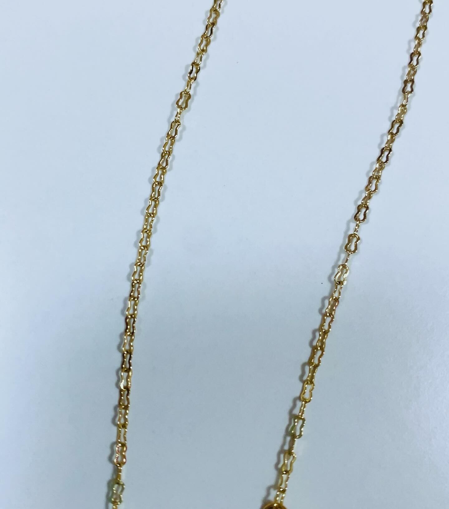 クローバーのチャームを2種類のチェーンで繋げたロングネックレスです。