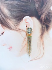 華やかなカボションに、ラインストーンタッセルを合わせたピアスとイヤリングです。
